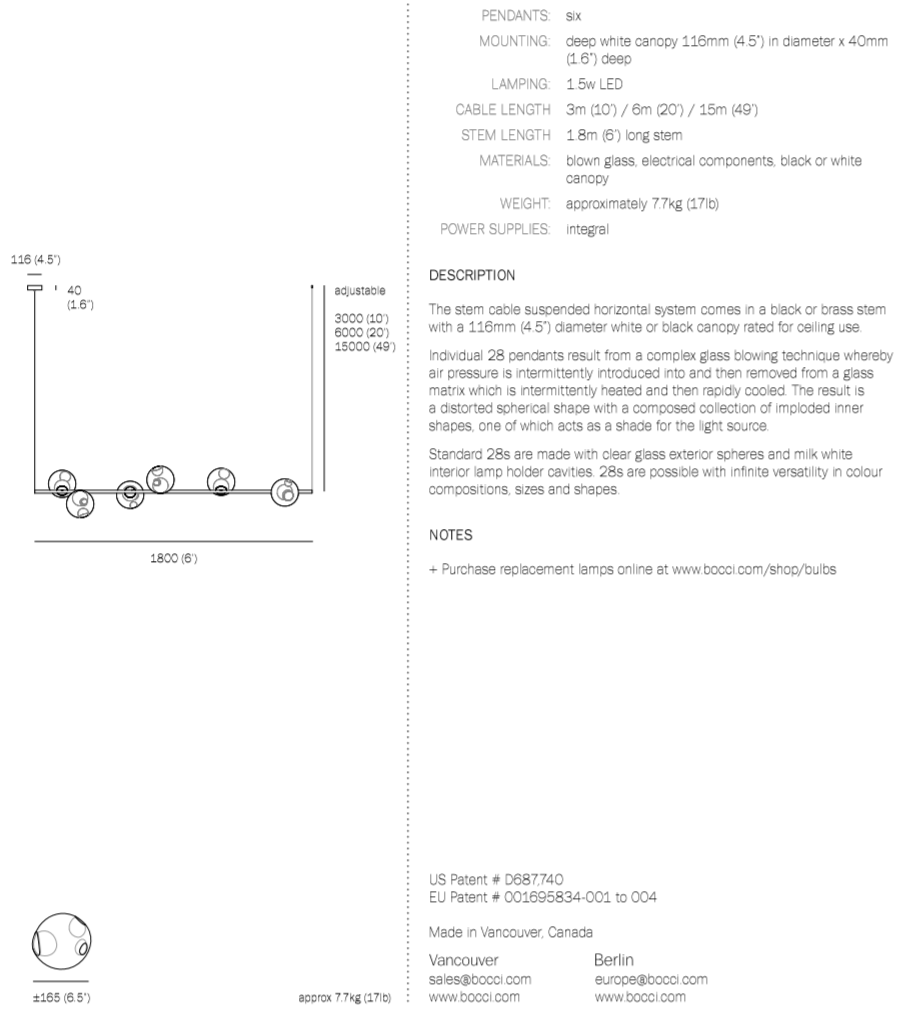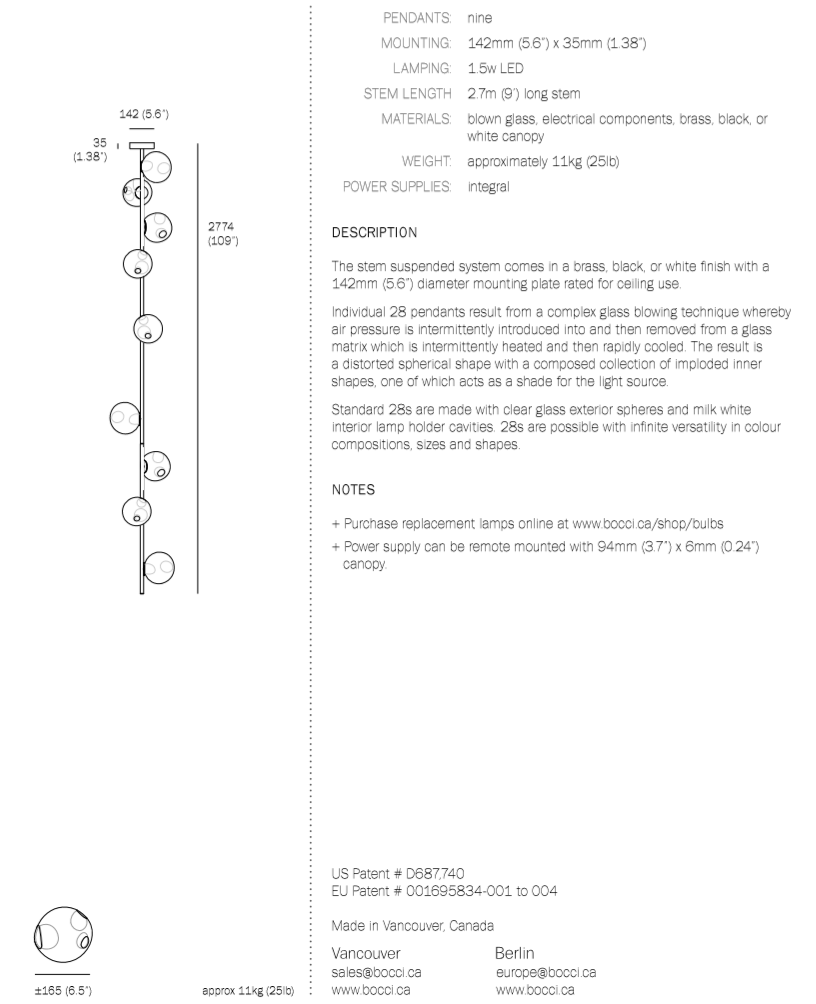 The 28 series stem suspended system comes in a brass or black finish and a variety of suspension options ranging from vertical ceiling-mounted stems to suspended horizontal stems. This system offers many options in terms of length and number of pendants.
