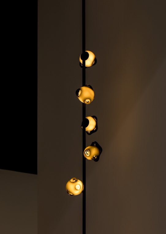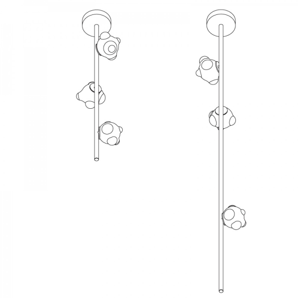 The 57 series stem suspended system comes in a brass or black finish and a variety of suspension options ranging from vertical ceiling-mounted stems to suspended horizontal stems. This system offers many options in terms of length and number of pendants.