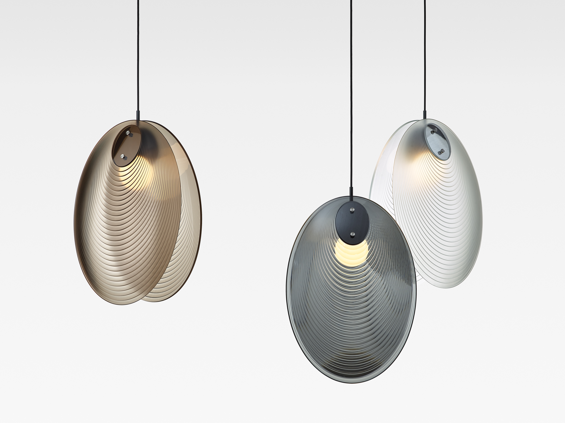 The name of this collection refers to pearls, specifically the Japanese female pearl divers called Ama. The Ama Collection visually evokes the delicate shells of mussels that produce treasured pearls. Ama is formed by a stylized cut-crystal shell, protecting a light source of LED chips hidden in a round lightbulb with a titanium nitride coating that produces its pearly sheen. Each glass shell is produced by using a special glassmaking technique. Over the course of two days, the glass is heated and gradually melts by its own weight into a prepared conical mold. Ama lighting comes in both opened and closed versions that work beautifully as individual pieces or natural groupings into mussel clusters. Ama collection designed by Václav Mlyná? is available in three original colors – smoke, bronze and crystal matte.