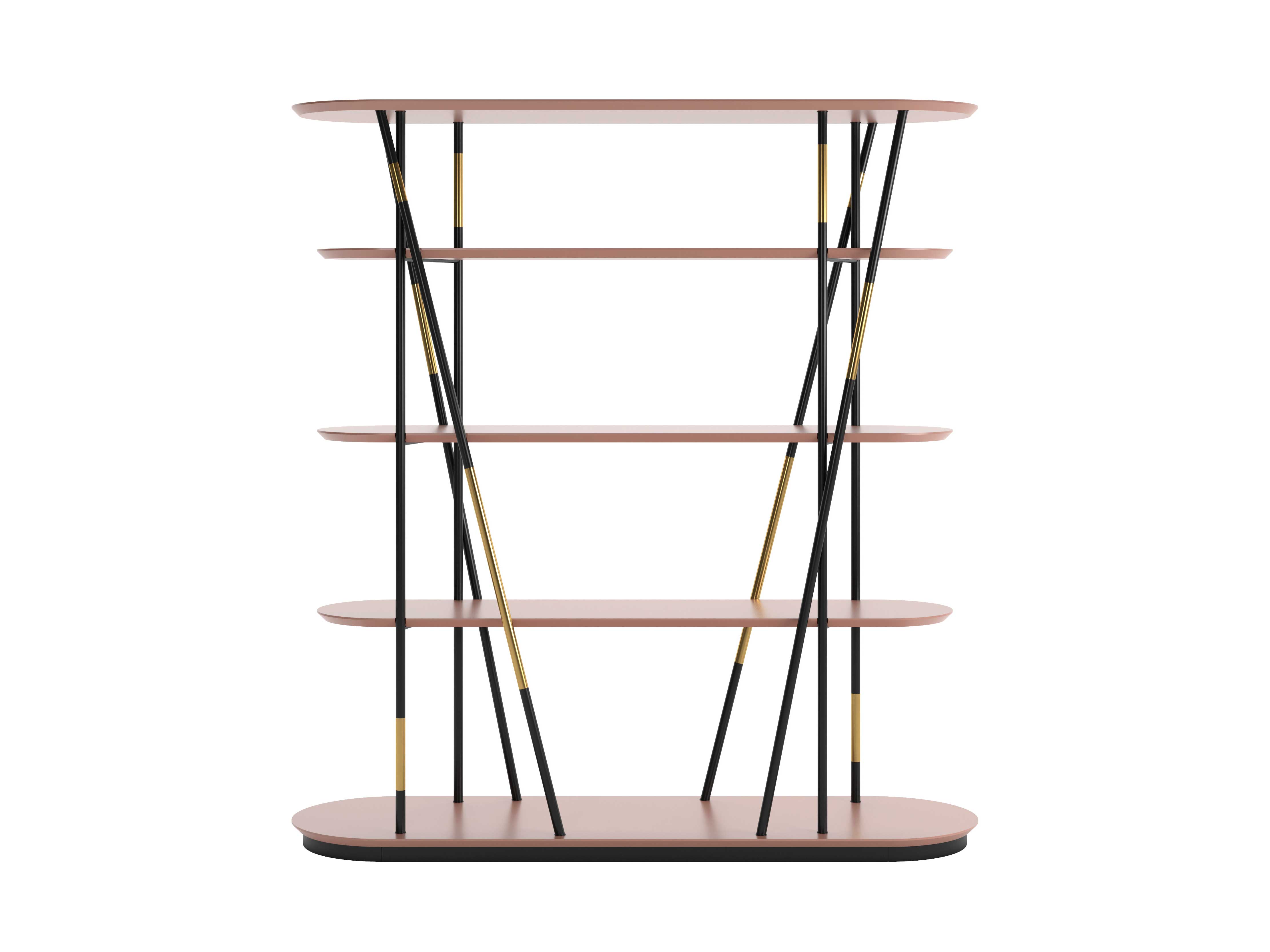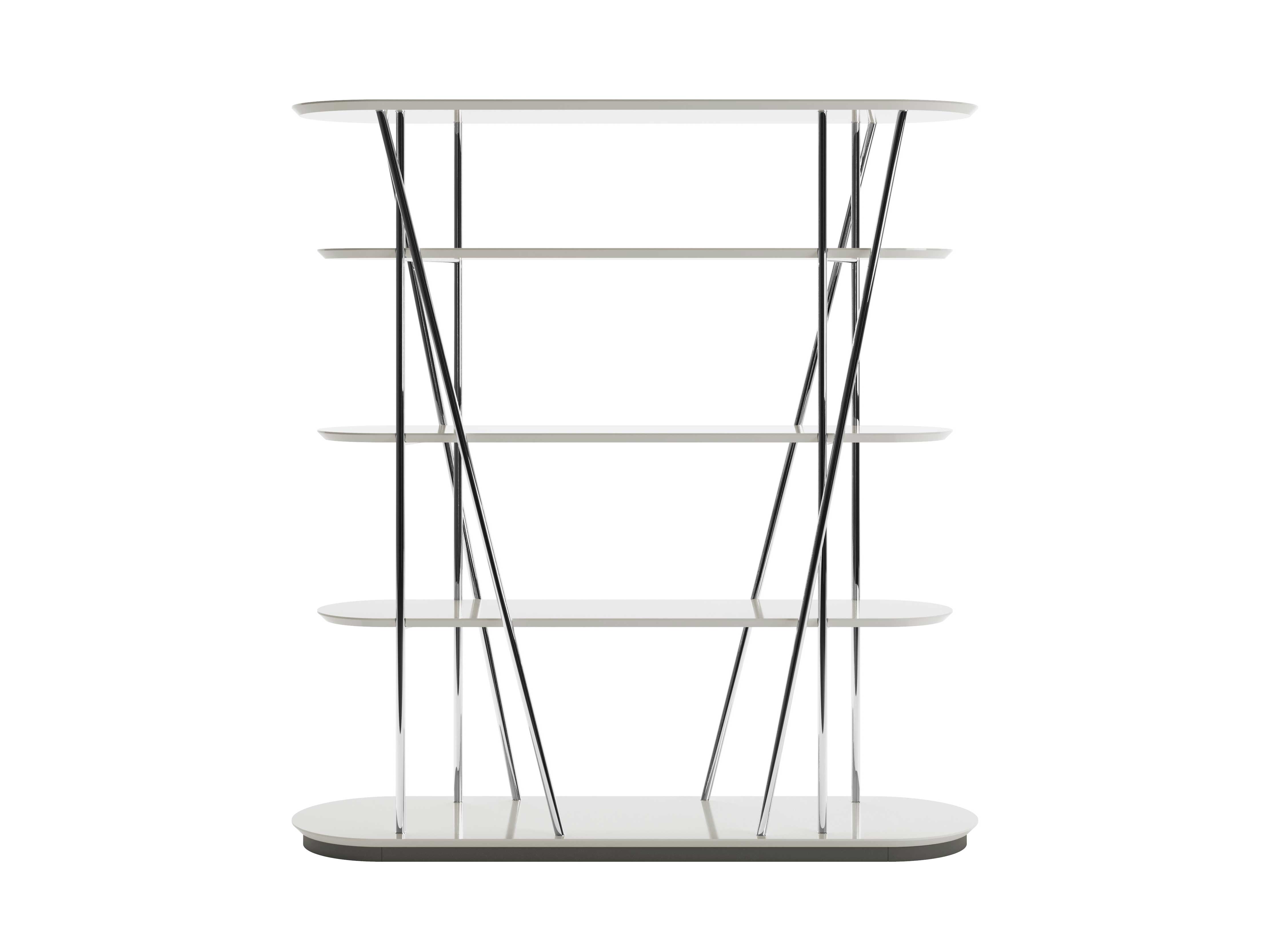 Sinuous lines and Eastern elegance perfectly blend in the Millepiedi bookshelf, spin-off of the homonymous table designed by Dimorestudio in 2023. The weight-bearing structure, which resembles the table, is made of thick metal tubes available in three different finishes: chromed, matt varnished in black colour or matt varnished in black colour with satin brass inserts.