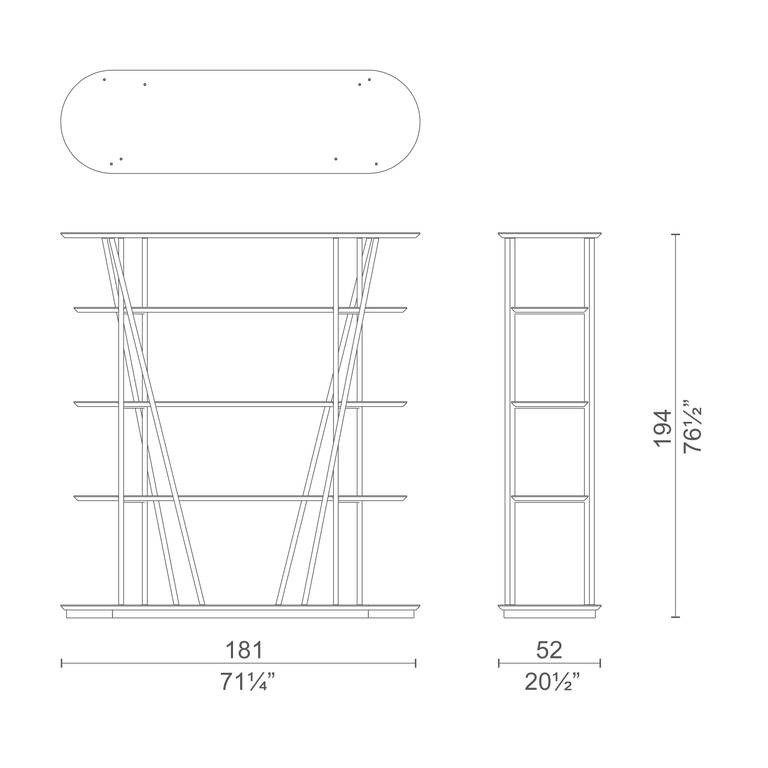 The wooden shelves of Millepiedi bookshelf, matte or glossy lacquered in all the colour from the collection, are slightly tapered and characterised by round and blunt profiles which give the product a light and extremely sophisticated look.