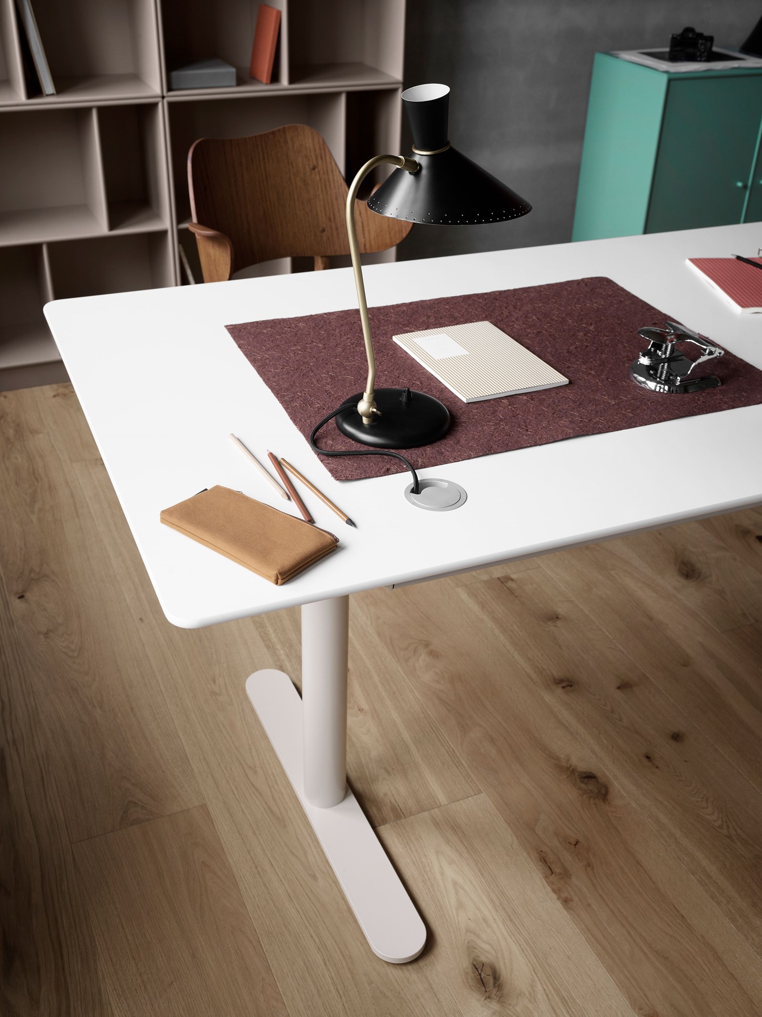 這款矩形高度可調節辦公桌非常適合私人和專業用途,無論是坐著還是站著工作。桌子的桌面由雪色的微型層壓板制成,框架有鋁制、黑色和雪色可供選擇。它的長度為 160 厘米,深度為 80 厘米。桌子的深度為鍵盤和顯示器、手臂支撐提供了足夠的空間,并且與顯示器和紙張有良好的觀看距離。框架專為提供充足的腿部空間而設計。該桌子具有 62.4 - 125.1 厘米的電動高度調節功能,HiLow 2 滿足歐盟和丹麥勞動監察局對靈活且符合人體工程學的工作場所的要求。