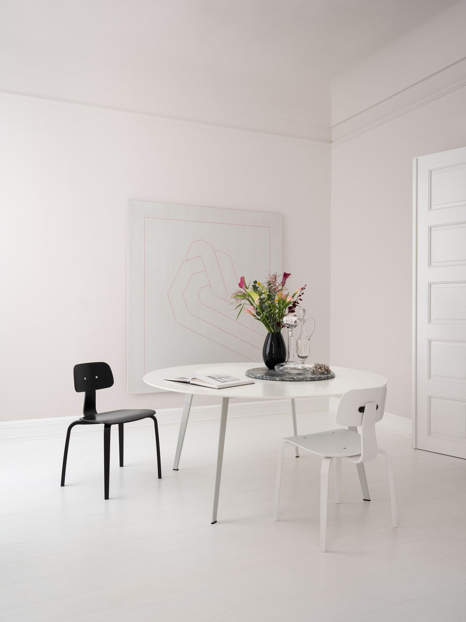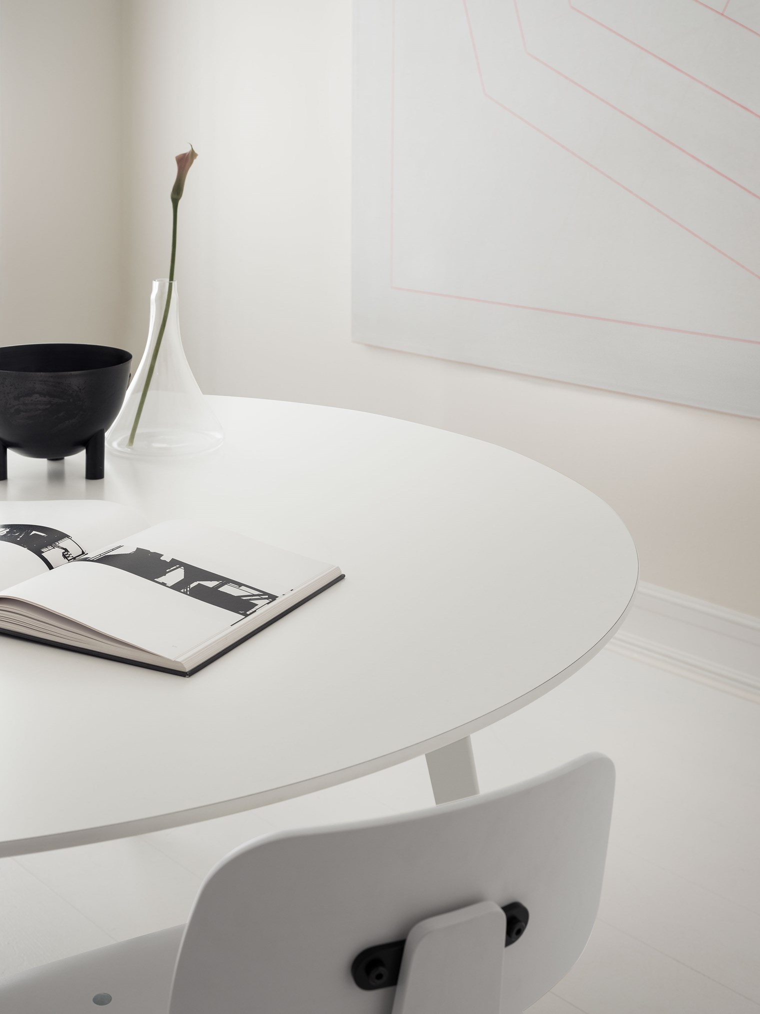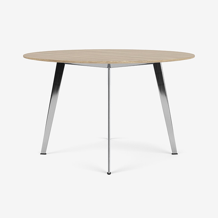 這款現代桌子具有無限的可能性,可以為私人和專業用途創造時尚簡約的室內設計。圓桌纖薄輕巧的設計使其成為餐廳或專業會議區的理想選擇。桌子直徑120厘米,高74厘米。由于桌子的設計注重舒適性和人體工程學,因此框架隱藏在桌面下方,桌腿略微向外傾斜,提供了最大的腿部空間。桌面有八種不同的材料可供選擇:雪絲層壓板、黑色和新北歐顏色的油氈、白橡木、燒橡木和黑橡木以及實心道格拉斯橡木和實心橡木貼面。