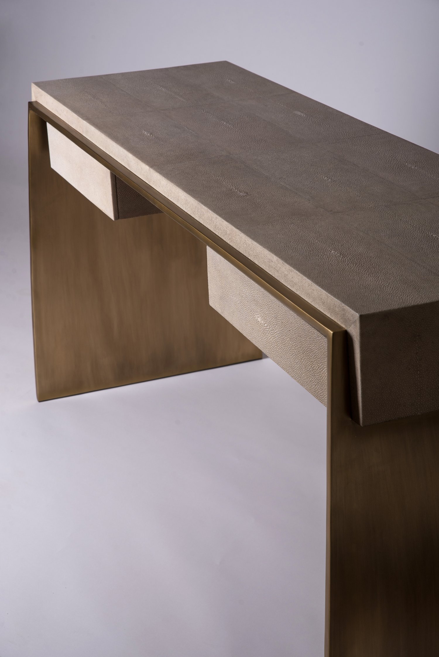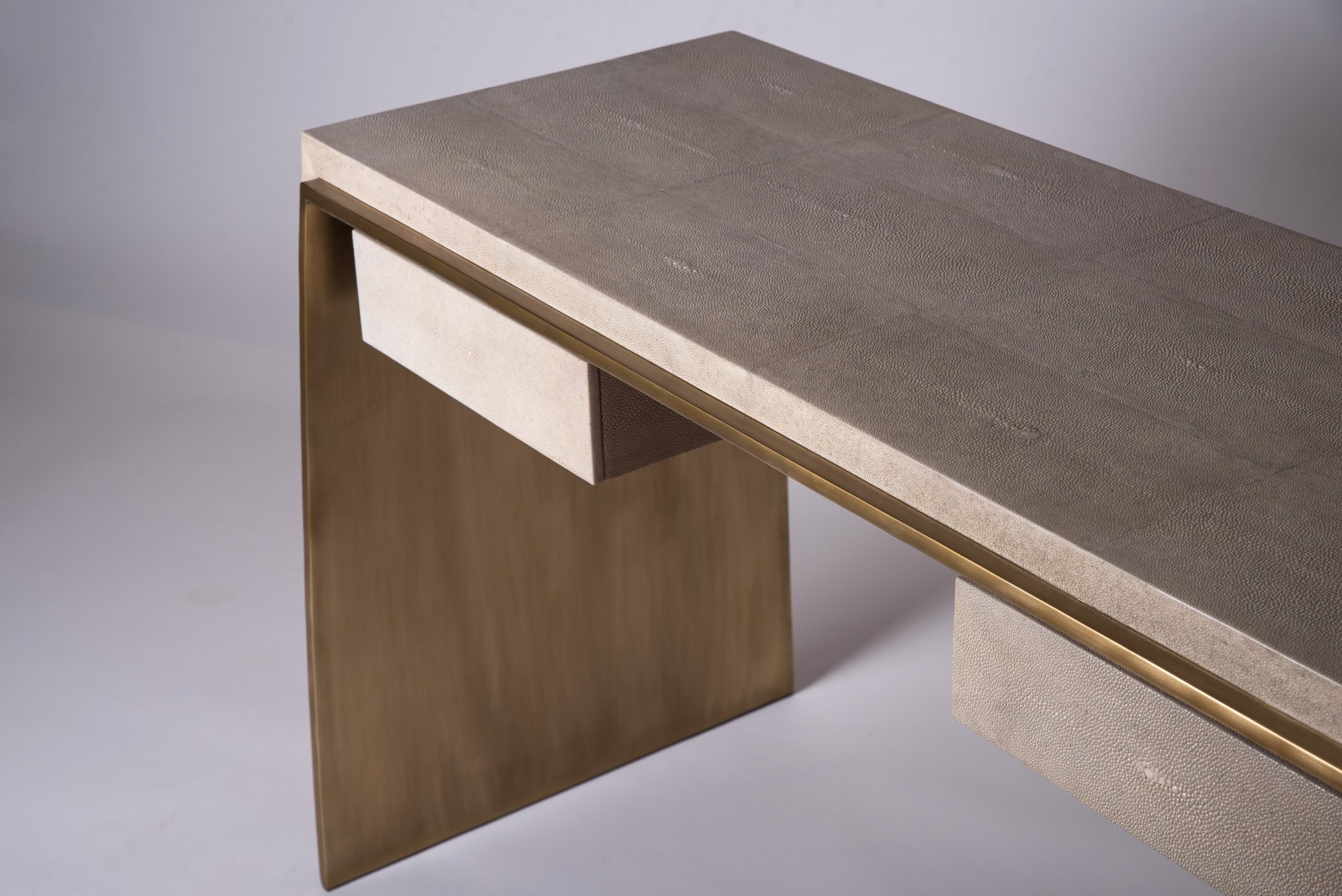 The St Honore Writing Desk is the ultimate luxury piece for an office. The shagreen overlay is asymmetric as shown on the stool.