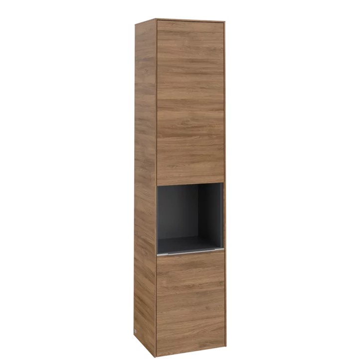 Modern, angular bathroom furniture with a subtle aluminium handle