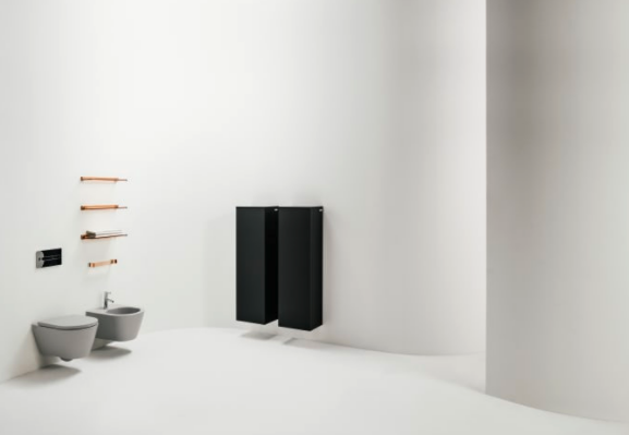 all cabinet with 1 door, left hinged, 4 glass shelves