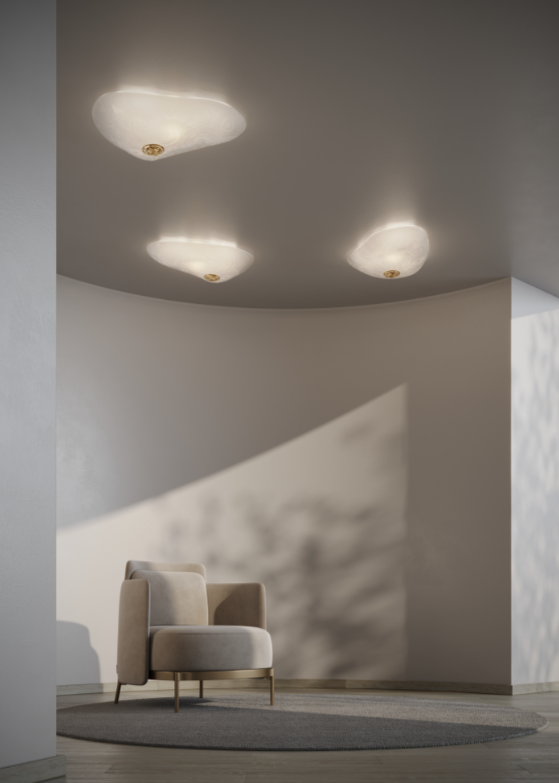 The new Sushi ceiling lamp is an evolution of Campana Brothers' classic Sushi collection. Originally produced with offcuts of carpet, rubber and EVA for their furniture pieces, this collaboration elevates it to crystal glass adding a new element of transparency and organicity. The irregular surface that covers its concave shape brings depth and dimension to the piece, showing new frontiers to the classic collection.