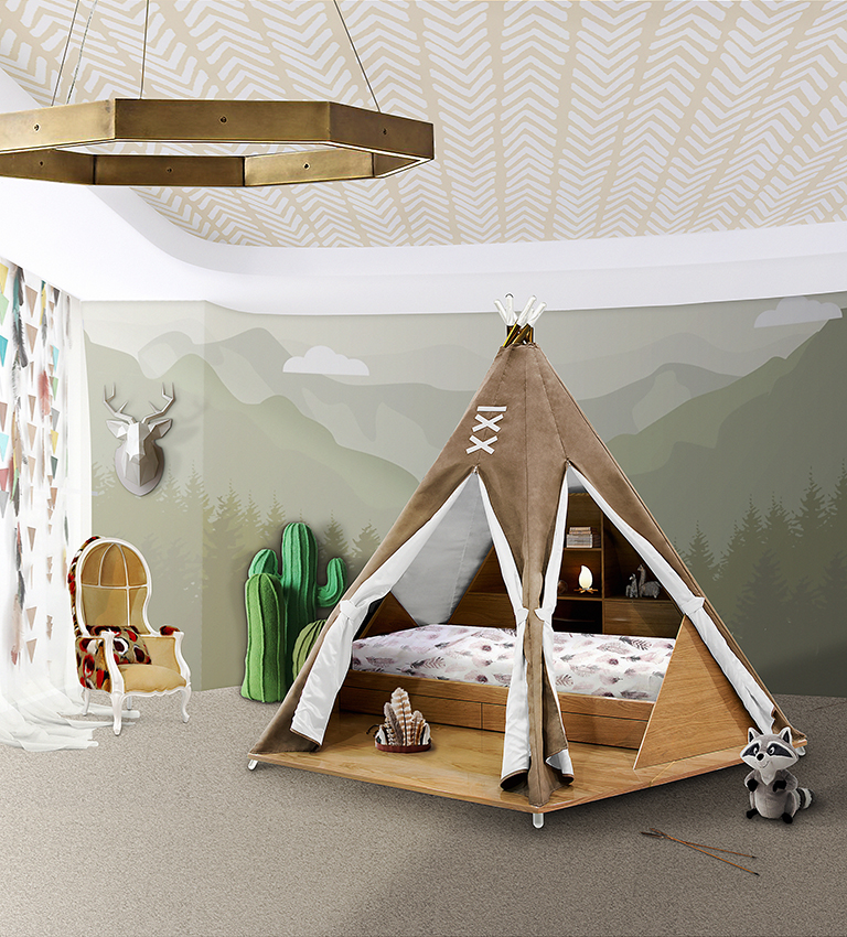It is comfortable, cozy and playful, featuring interactive design elements such as a remote controlled light and sound system and a toy box that functions as a secret compartment.