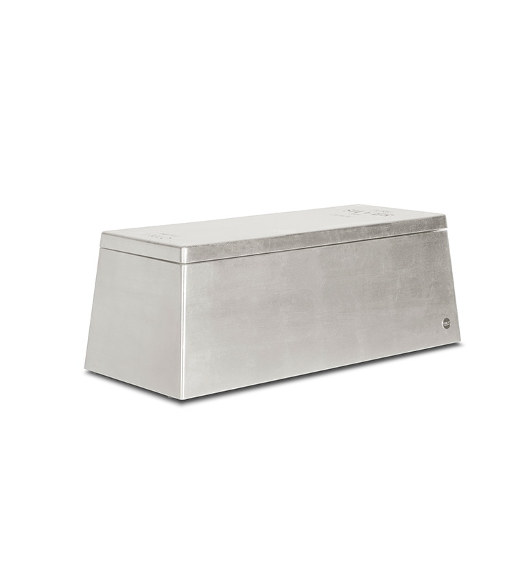 Silver Box is a luxurious kids’ toy box inspired by the fine silver bar shape. Inspired by the adventures of Scrooge McDuck, the richest duck in the world, this toy box is a useful storage solution for kids’ precious toys and secret treats.This exclusive toy box is built on wood, lacquered with metallic paint and has silver leaf finishes. It features a rotating cover and a secret compartment, for the most treasured kids’ goods.