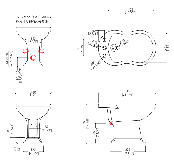 A bidet in fine white porcelain with external irrigation and 1 or 3 holes. Having a distinctly classic taste, it is characterized by soft sinuosity and decorations that recall the organic shapes of a shell.