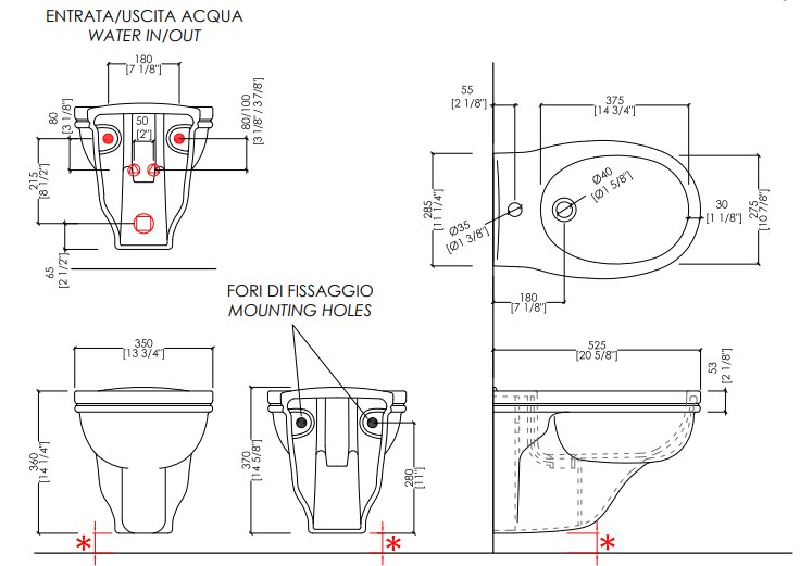 Classic lines and 1950s inspiration for a wall-hung bidet in fine white porcelain with external irrigation and 1 hole, which combines bon ton taste with functionality in a perfect mixture.