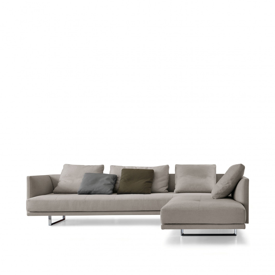 Understatement with lasting quality. The generous pads float with an airy but at the same time opulent appearance. The slim arm and backrests behind the soft seat cushion ensure support. Prime Time Sofa is available in a variety of versions: single, extension, and corner solutions offer the appeal of minimalist elegance.
