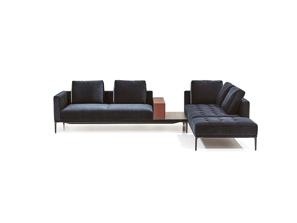 Hinter der von pr?ziser Handwerklichkeit gepr?gten Optik steckt hoher Komfort. Das einzigartige Sitzgefühl ist typisch für die Wittmann-Polsterung: Weder weich noch hart, sondern angenehm stützend und federnd. Der Aufbau vereint auf minimierter Bauh?he eine elastische Unterfederung, Taschenfederkerne, sowie sorgf?ltig ausgew?hlte Schichten hochwertiger Schaumstoffe. Die reduzierten Stahlfü?e sind raffiniert fl?chenbündig in den bezogenen Rahmen eingelassen. Die M?bel schweben über dem Fu?boden und wirken selbst bei üppigen Gr??en leicht.