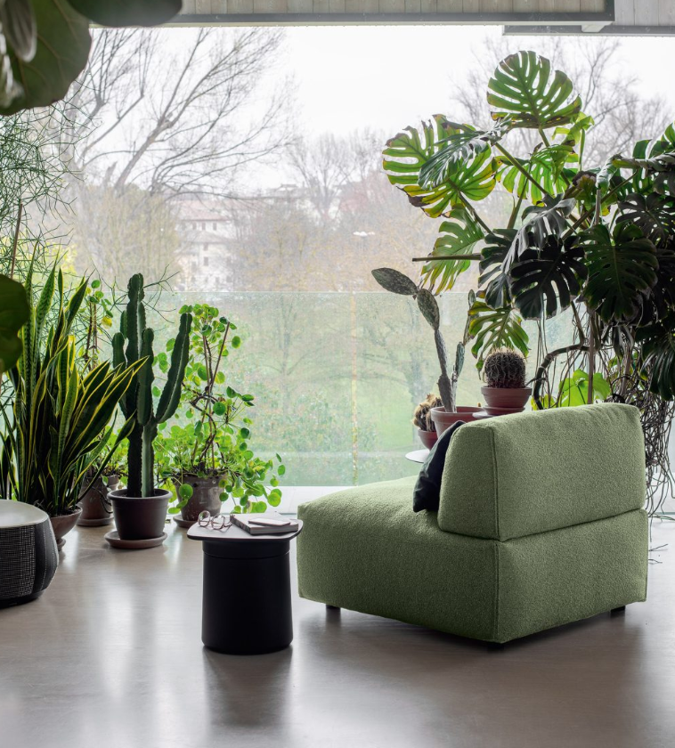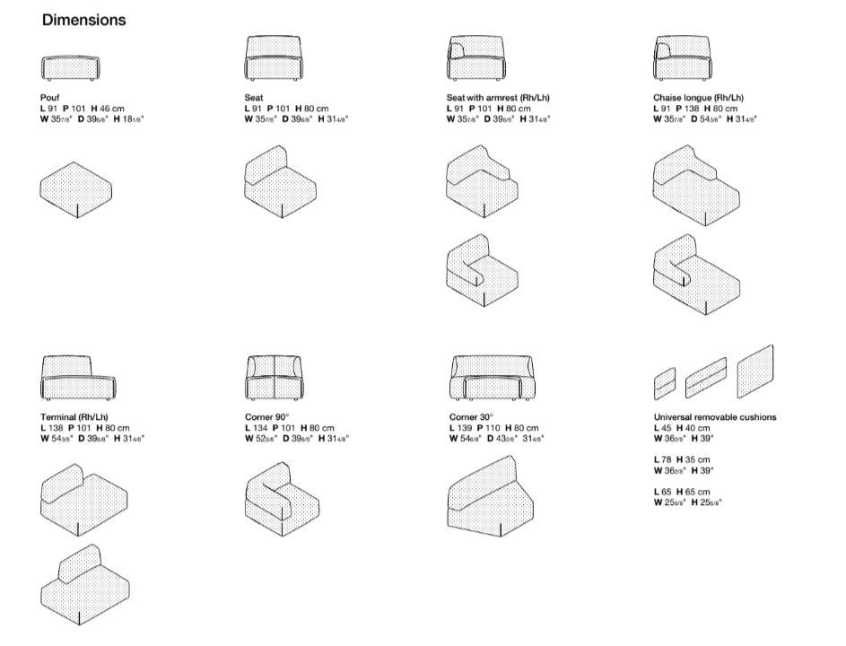 Forma has generous dimensions, a comfortable and balanced seat height, soft padding and extra cushions. Its interlocking design does not require glueing.