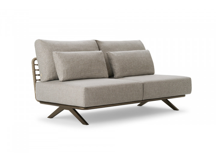 Elemento 2 posti in acciaio inox Aisi 304 e alluminio verniciato a polveri, intrecciato in Oval Trendyrope. Componente modulare della collezione Arman, un concept di design che consente di combinare i diversi elementi in modo armonioso e personale. La generosa e comoda seduta invita al relax, regalando una sensazione di comfort accogliente e conferendo un'eleganza contemporanea agli spazi circostanti. L'intera gamma è progettata sia per l'arredamento residenziale che per quello contract, sia per gli spazi outdoor che indoor.