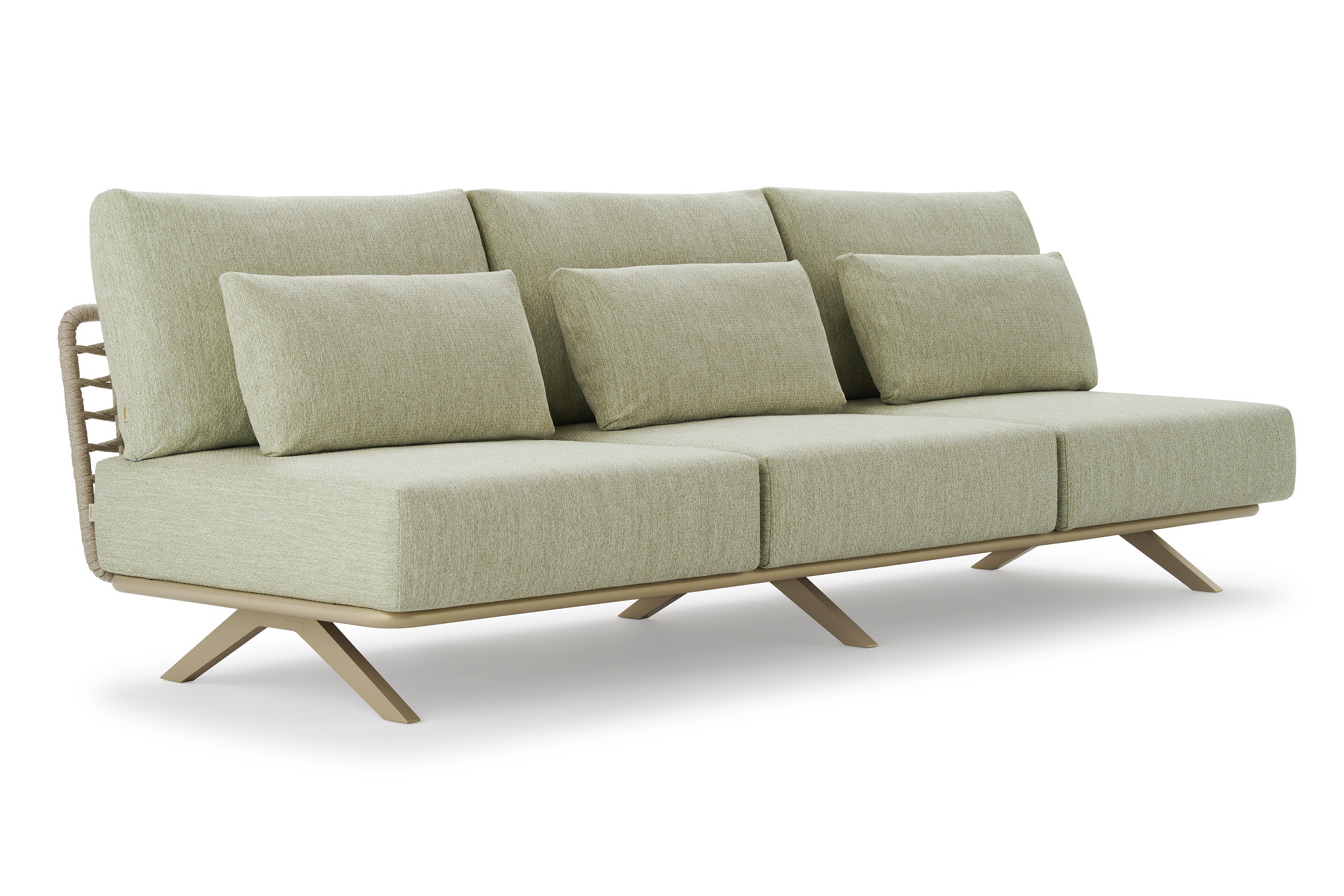 Elemento 3 posti in acciaio inox Aisi 304 e alluminio verniciato a polveri, intrecciato in Oval Trendyrope. Componente modulare della collezione Arman, un concept di design che consente di combinare i diversi elementi in modo armonioso e personale. La generosa e comoda seduta invita al relax, regalando una sensazione di comfort accogliente e conferendo un'eleganza contemporanea agli spazi circostanti. L'intera gamma è progettata sia per l'arredamento residenziale che per quello contract, sia per gli spazi outdoor che indoor.
