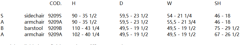 Model available in 40 finishes and 265 different coverings