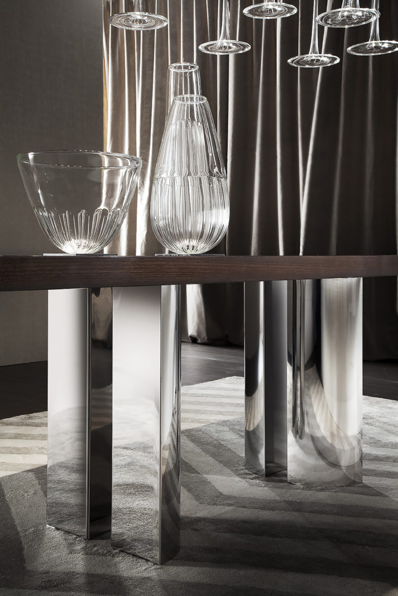 Model available in 8 different wood essences. It comes in 3 standard sizes and can be customized up to 310x120 cm