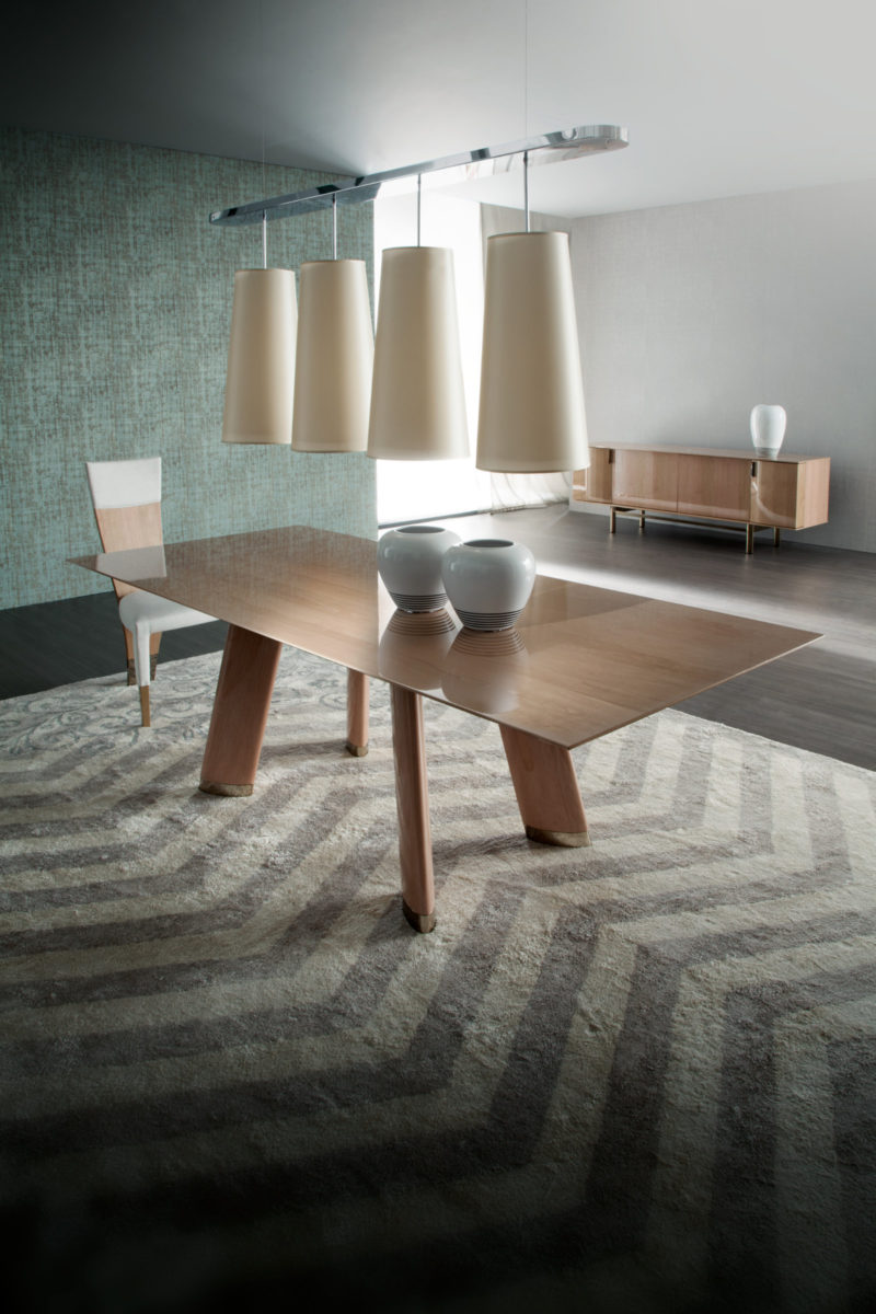 Model available in 8 different wood essences. It comes in 2 standard sizes and can be customized up to 300x120 cm