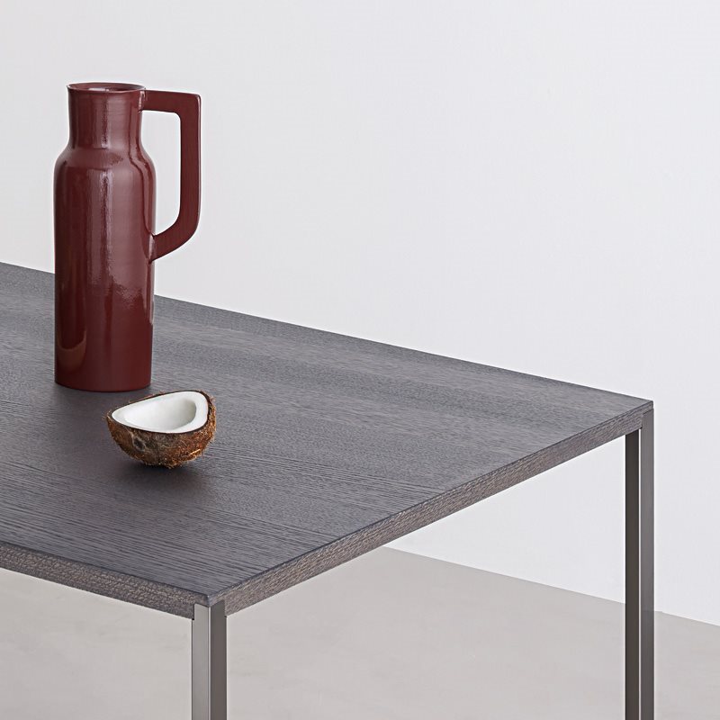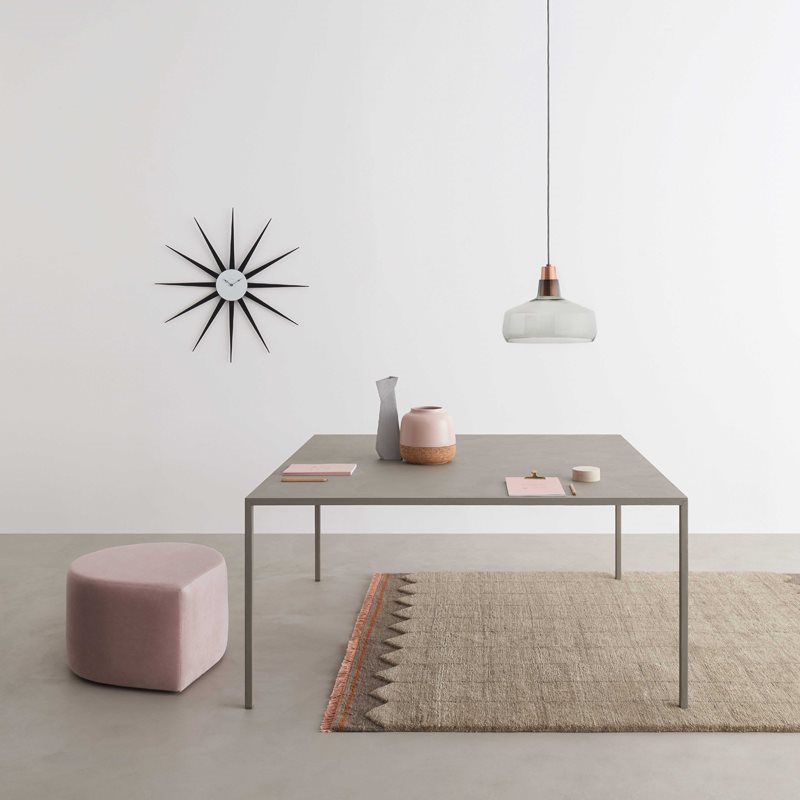 amazement this table evokes when comparing its slenderness to the considerable lengths it can achieve” The square version of the 25 table in its new Luna grey concrete finishing dominates the space around it with elegant compactness, faithful to its sophisticated personality.A new facet embellishes the special character of the 25 table: in this latest version the graphite oak gives value to the polished beauty of its concept. A typical example of Desalto research in material innovation.