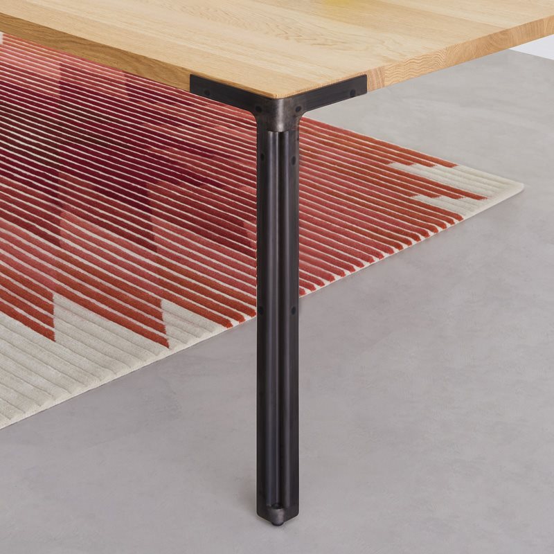 With the bold look of its sawn-effect oak top, the Fan table displays a unique, precise style concept. The legs, too, convey an exclusive industrial language to enhance the uniqueness of this design.A clear concept gives life to a rigorous yet expressive collection.“The leg consists of a simple plate that a fold and a counterfold make structural, becoming its characteristic detail, taking on a very interesting industrial language”.