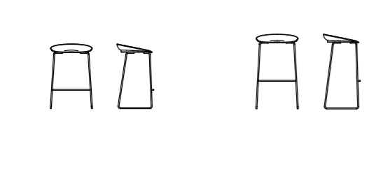 Sinuous and ergonomic seat that harmoniously combines with two different heights. Essential and filiform structure in steel rod.Stool with seat in glossy white or glossy black nylon. Stool with frame in chromed or lacquered steel rod.