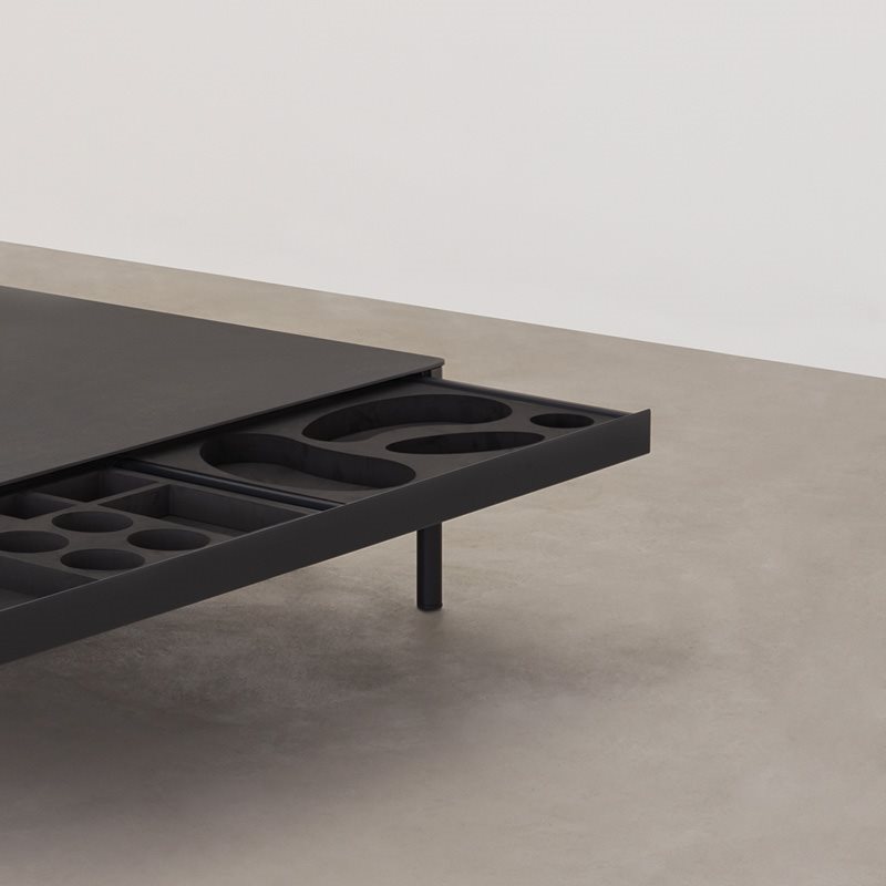 In Icaro 015, function becomes aesthetics, a flight of design creativity with a structure incorporating pull-out drawers. Just for aesthetic purposes, it is available a connection bracket made of steel, with the same nishing as the frame. Icaro 015 collection also boasts a versatile console with an extremely clean line, perfect to enhance any environment.The eclectic personality of the Icaro 015 console joins the family that bears the same name. Linear, basic, essential, it easily reaches an aesthetic synergy with the other furnishings.