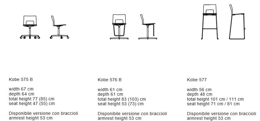 Kobe's BAYDUR? shell is all about eco-sustainability. Baydur? is a high-performing, strong and rigid polyurethane. The result is a very ergonomic chair: the flexible backrest adapts to any posture. Available in new trendy colours. Seating system and barstool with shell of BAYDUR?, with or without armrests. Frame with 4 legs of steel tube, steel rod or swivelling base with adjustable height.