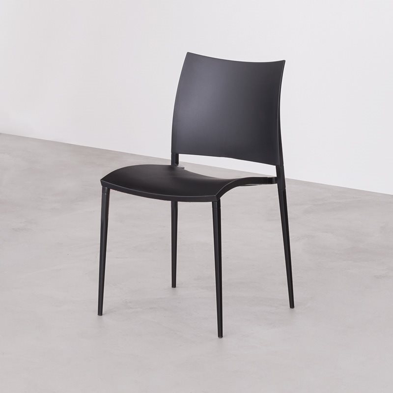Stacking chair with or without armrests, die-cast aluminium frame. Seat and back of polypropylene, reinforced with ber glass, stabilised anti-UV. Lacquered frame versions with polypropylene suitable also for outdoor use. Available also with fabric, leather, eco-leather and cow-hide covering. The stool (not stackable) has the same characteristics as the chair.