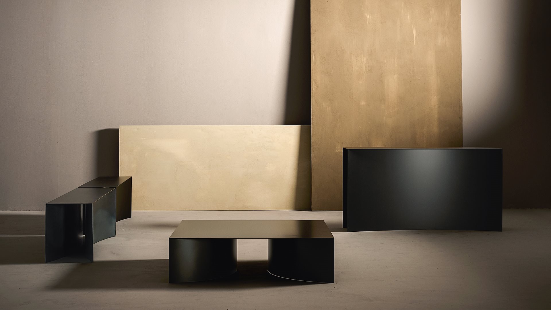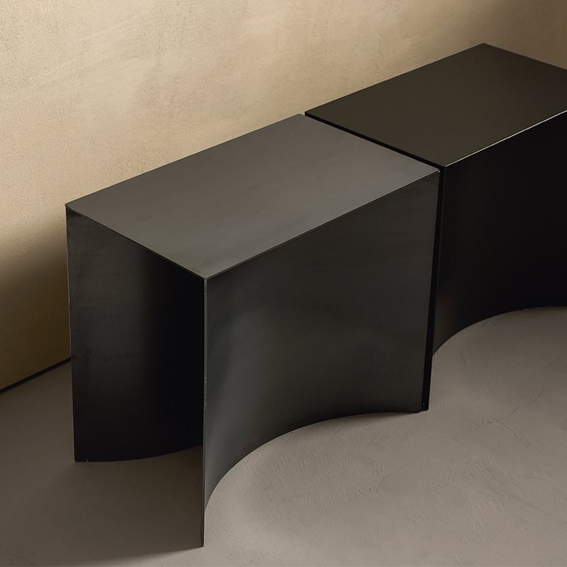 This subtle gesture of subtraction results in a very strong impact, thanks to the curvature of the base defining a space which alters the visual perception of the objects.