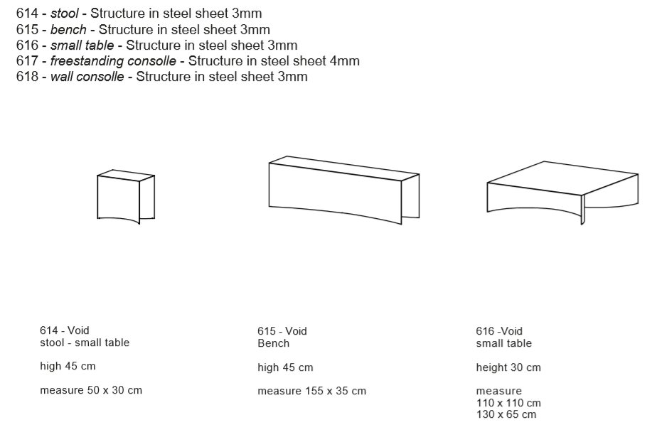The ‘Void’ series originates as an investigation of form in relation to the architectural notions of mass and emptiness. The collection is characterised by the extreme purity of the volumes, whose lineal profiles define a solid that has been partially deconstructed and carved out.