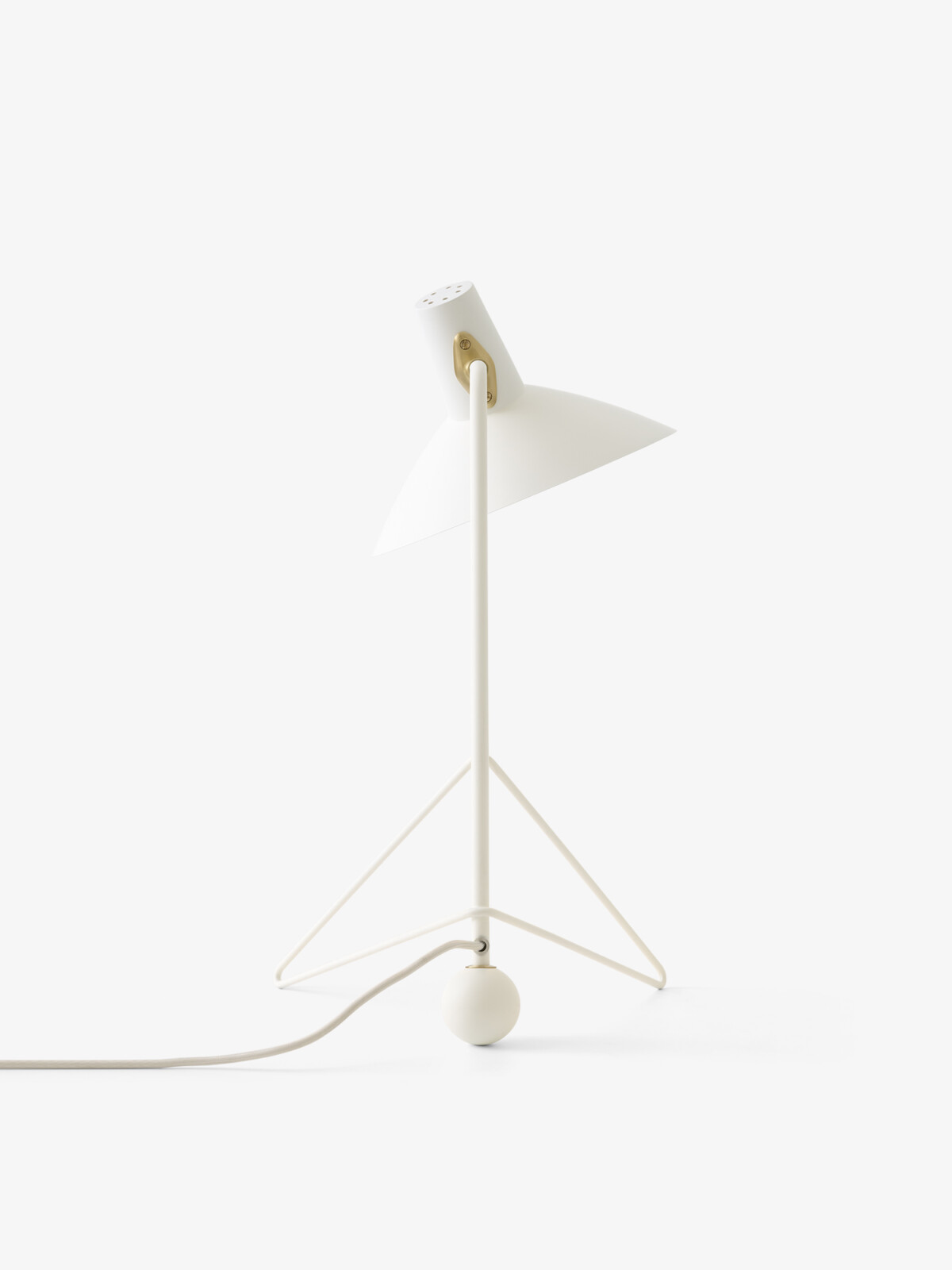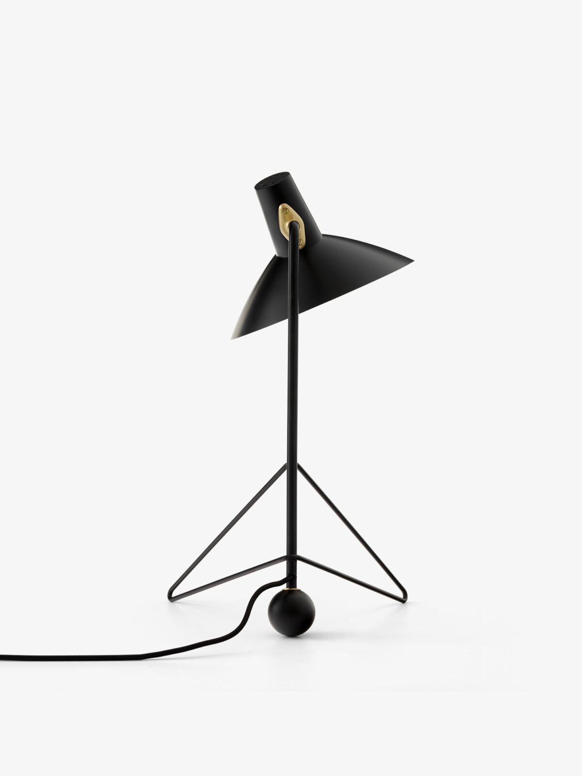 Tripod, a table lamp built from powder-coated steel with brass details, reflects the clean minimalism of historic Copenhagen-based duo Hvidt & M?lgaard. Considered Old Masters of mid-century Danish design, their pieces often lend a sculptural element to the spaces they inhabit. For easy articulation and a more precise light, a swivel joint has been developed – a feature now seen across the entire Tripod range.