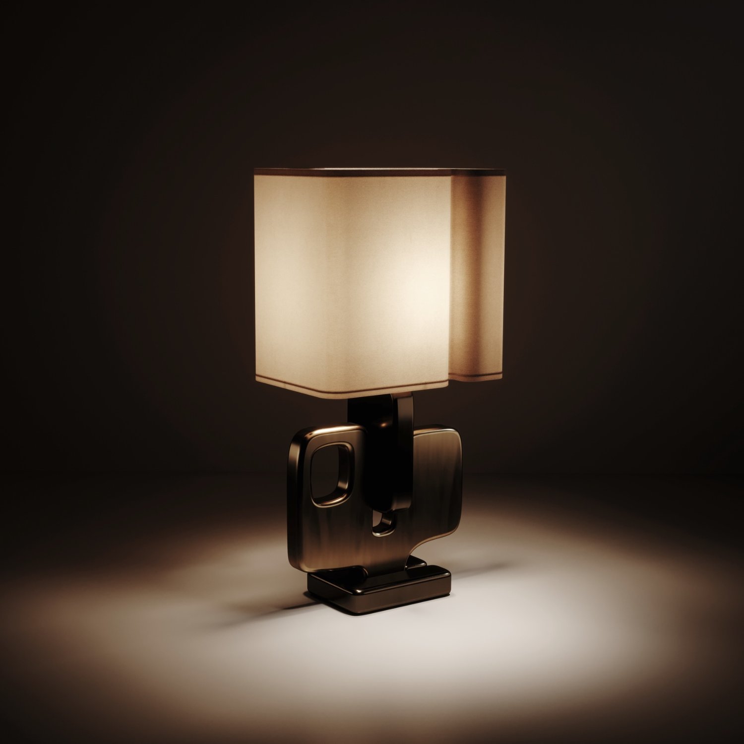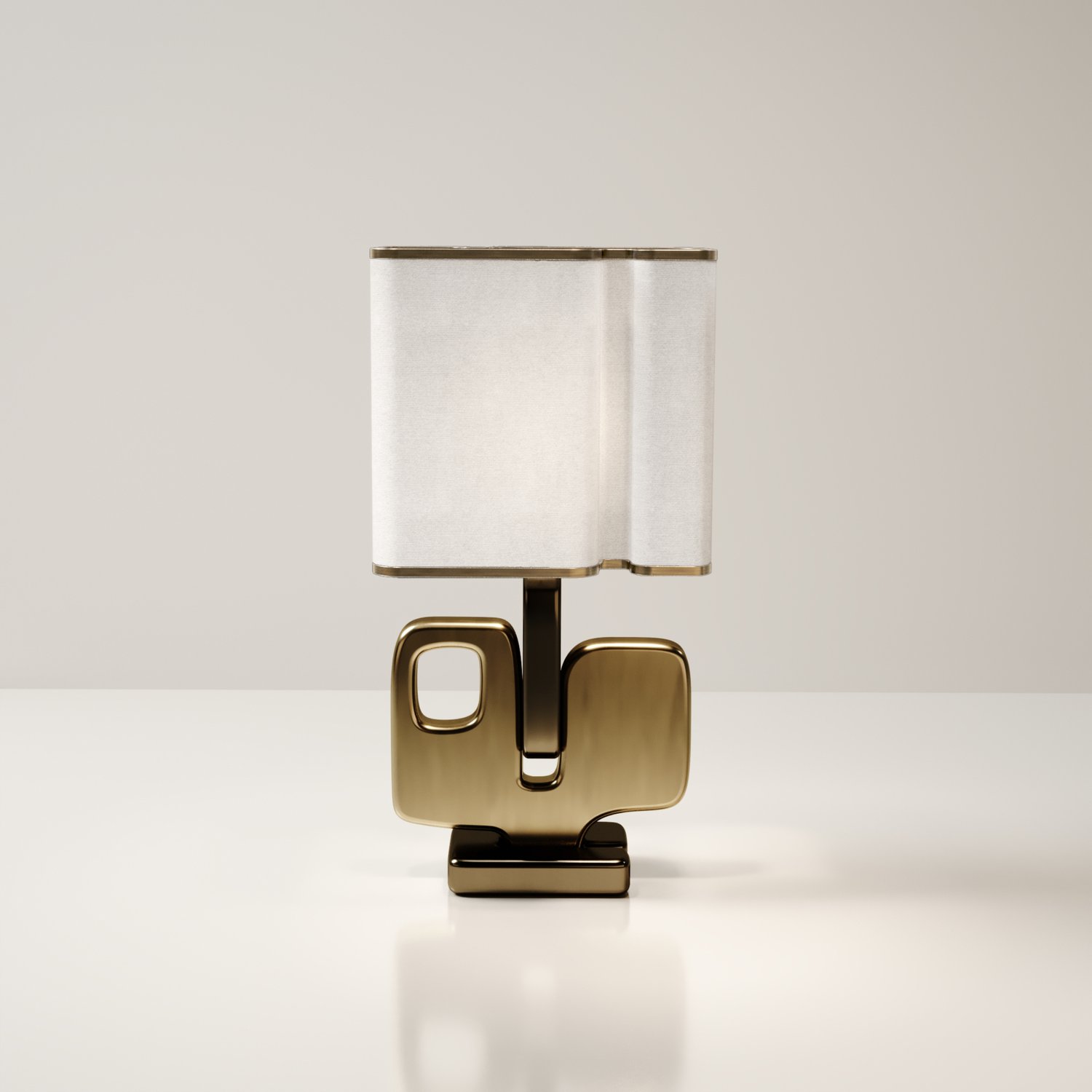 The Apoli table lamp by Kifu Paris is both dramatic and organic it’s unique design. The ethereal geometric and sculptural base is made entirely from bronze-patina brass. This piece is designed by Kifu Augousti the daughter of Ria and Yiouri Augousti. Part of the Apoli Capsule Series.