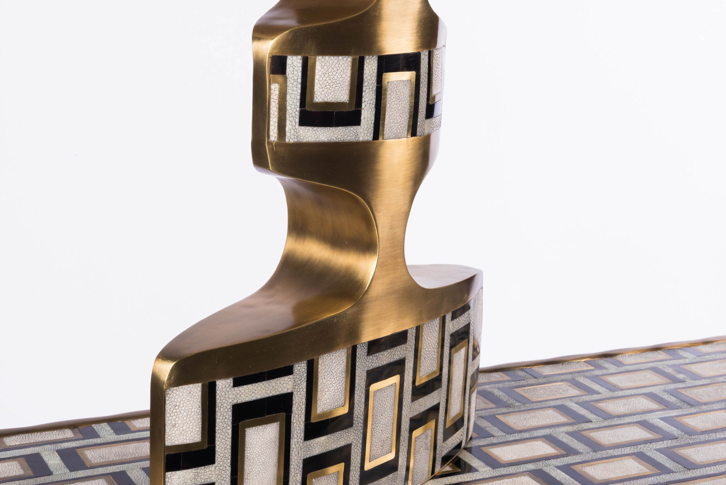 All R&Y Augousti pieces are handcrafted by skilled artisans. Each design uses unique materials, predominantly shagreen accented with bronze patina brass. Color variants may occur on the stingray and other exotic finishes, but this showcases the Parisian label's commitment to creating authentic luxurious products using natural components.