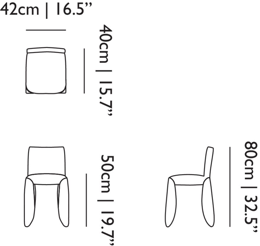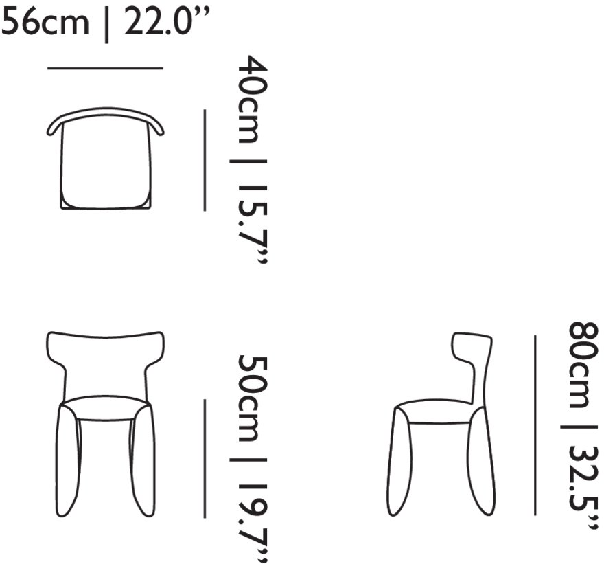 A soft, puffy and stylish chair as symbol of the eternal battle between opposite forces that take place in life and can be easily recognized inside ourselves, if we have the courage to open our eyes. Scary? Not at all! You forget all about the monster once you sit down and enjoy the chair’s comfort and softness. The signature version, the fearless leader of our Monster family, comes upholstered in Moooi Original Black Synthetic Leather with an embroidered face.