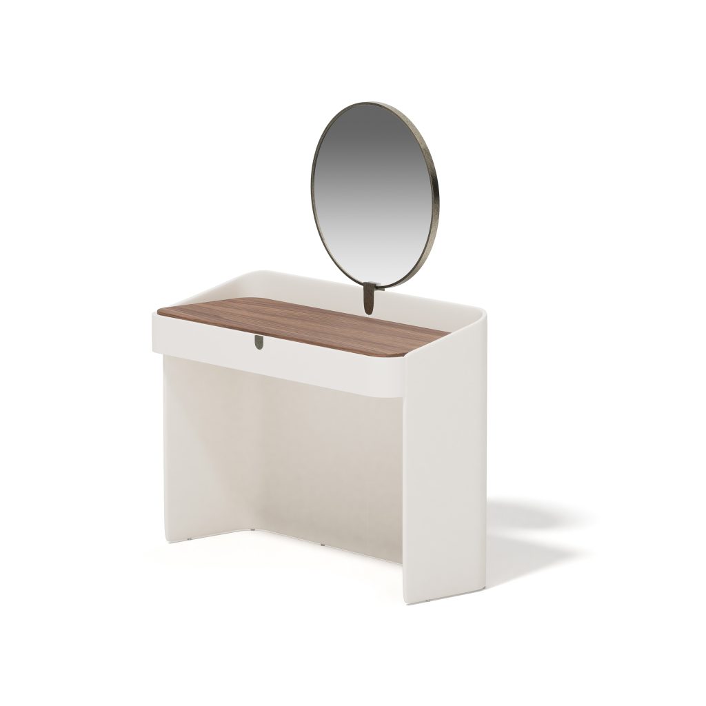 Suite caratterizzata da forme contemporanee e raffinate, risultato dell’unione di linee semplici a dettagli di qualità sartoriale.Nr. 2 frontale cassetti in laccato.