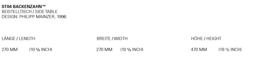 The original BACKENZAHN? designed in 1996 by e15 founder and architect Philipp Mainzer is a modern design classic as well as an identifiable icon for e15. Crafted in Germany, the stool (with shaped seat) or the side table (with flat top) is offered in oiled European oak or walnut. For its signature form and detail the centre of the tree is used. During the seasoning of the solid wood, the legs form their characteristic cracks, which make every stool unique.