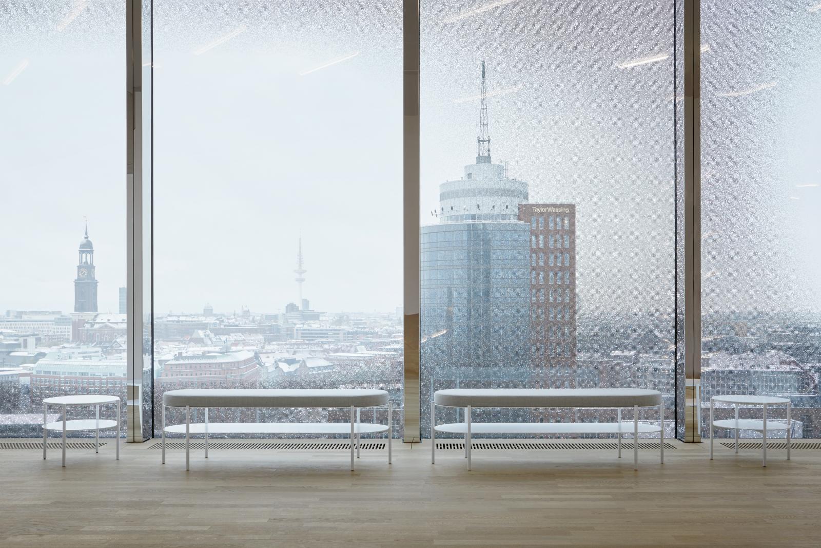 With its clear structural concept and circular form, ELBE II is a versatile side table suitable for private as well as contract situations. Available in signal white with table top in Bianco Carrara, the side table ideally complements bench ELBE III, which was also designed for concert hall Elbphilharmonie by Herzog & de Meuron architects.