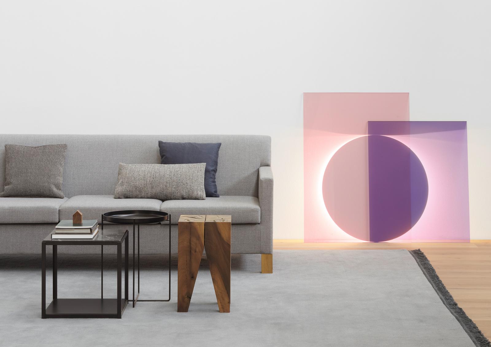 The flexible and stackable side table FORTYFORTY in powder-coated steel is a significant example of Ferdinand Kramer's fascination with variability and adaptability of multi-purpose furniture. Designed in 1945 during his time in America, the playful FORTYFORTY expresses lightness and elegance despite its strict geometrical shape. Removable and invertible trays for top and bottom of the frame in coloured steel or marble offer a multitude of possibilities and set individual accents. Stackable to up to five, the versatile character of the FORTYFORTY side table allows for an application in diverse environments, either as a stand-alone piece or also in combination with other furniture from the e15 collection. Frame and trays are delivered separately.