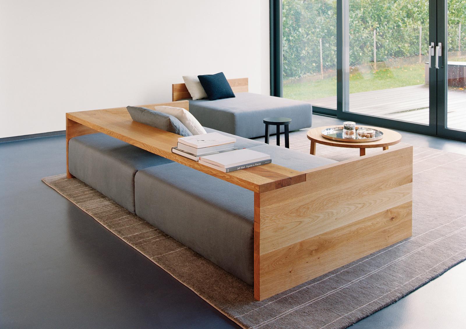 With its rounded, minimalistic forms, the LEILA coffee table supplies a compelling contrast to the rectangular structure of sofas and chairs. Given its different size options, the LEILA possesses exceptional versatility. LEILA is available in selected materials, such as solid European oak and walnut. The oak version is also available in colour stained and matt varnished surface tones. This combination produces a capturing effect by allowing the natural wood grain patterns to shimmer forth from beneath the varnish, highlighting the origin and authenticity of the materials. The ideal companions of the LEILA are the tables ALEX and the HABIBI tray.