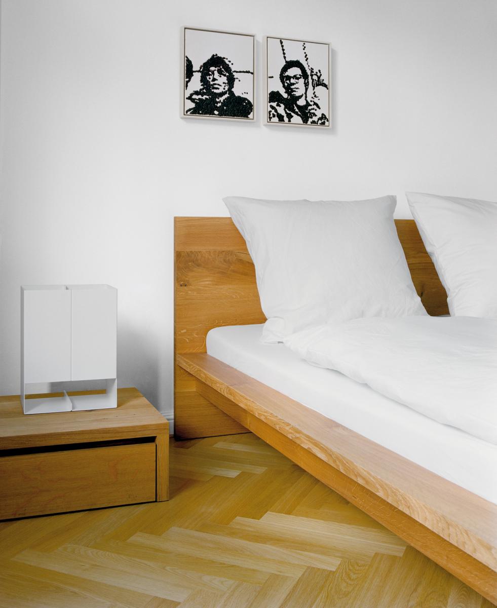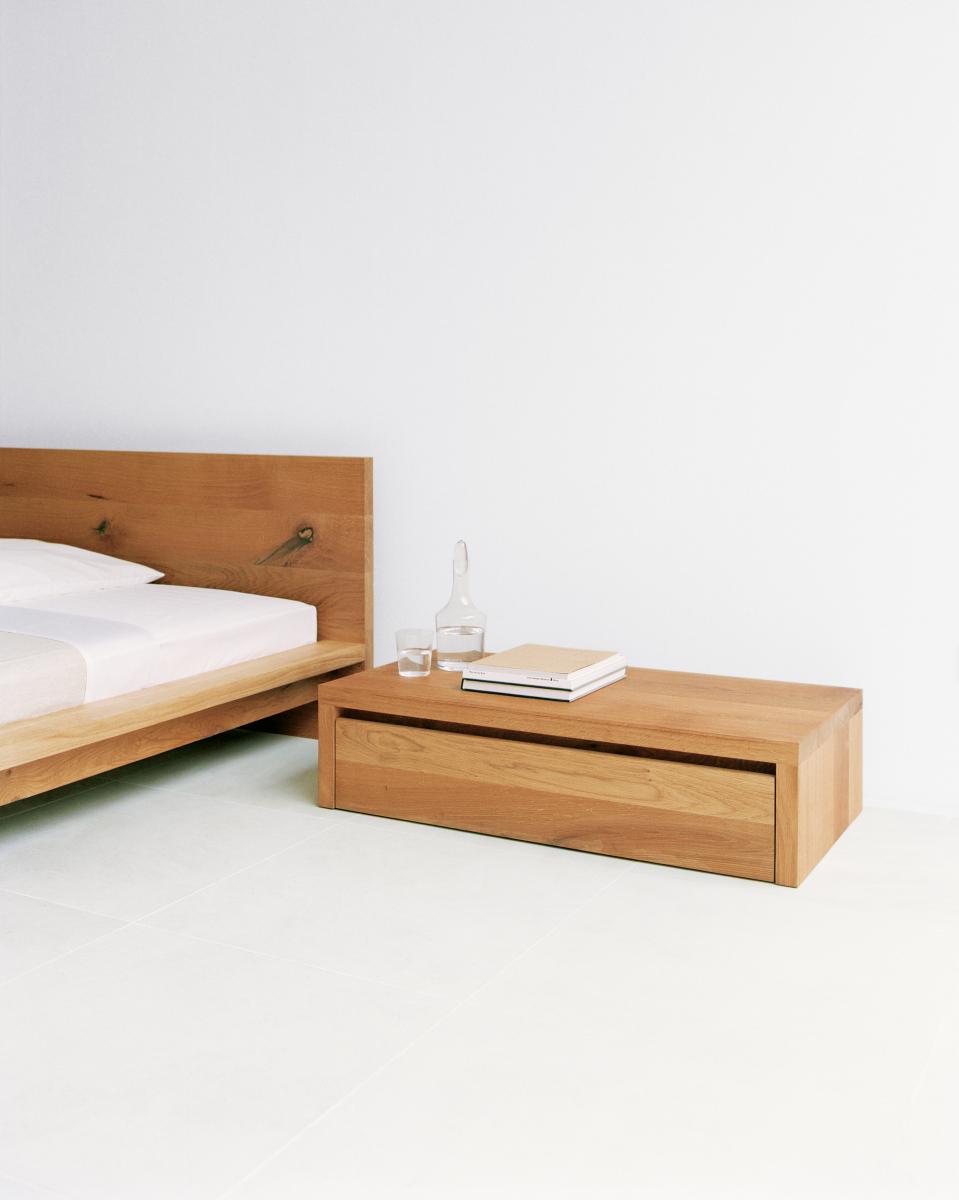 The solid wood bed MO is an original and iconic e15 design, representing e15’s distinct and enduring design aesthetic. Ideally complemented by bedside tables MAX and EMIL.