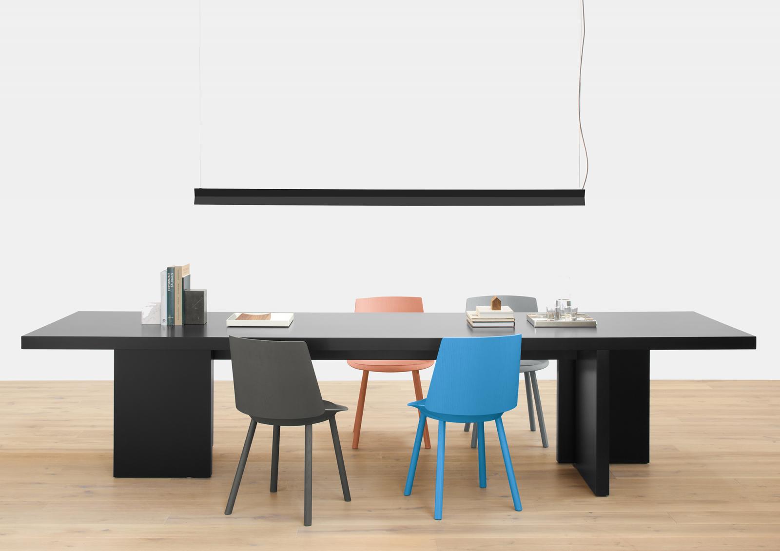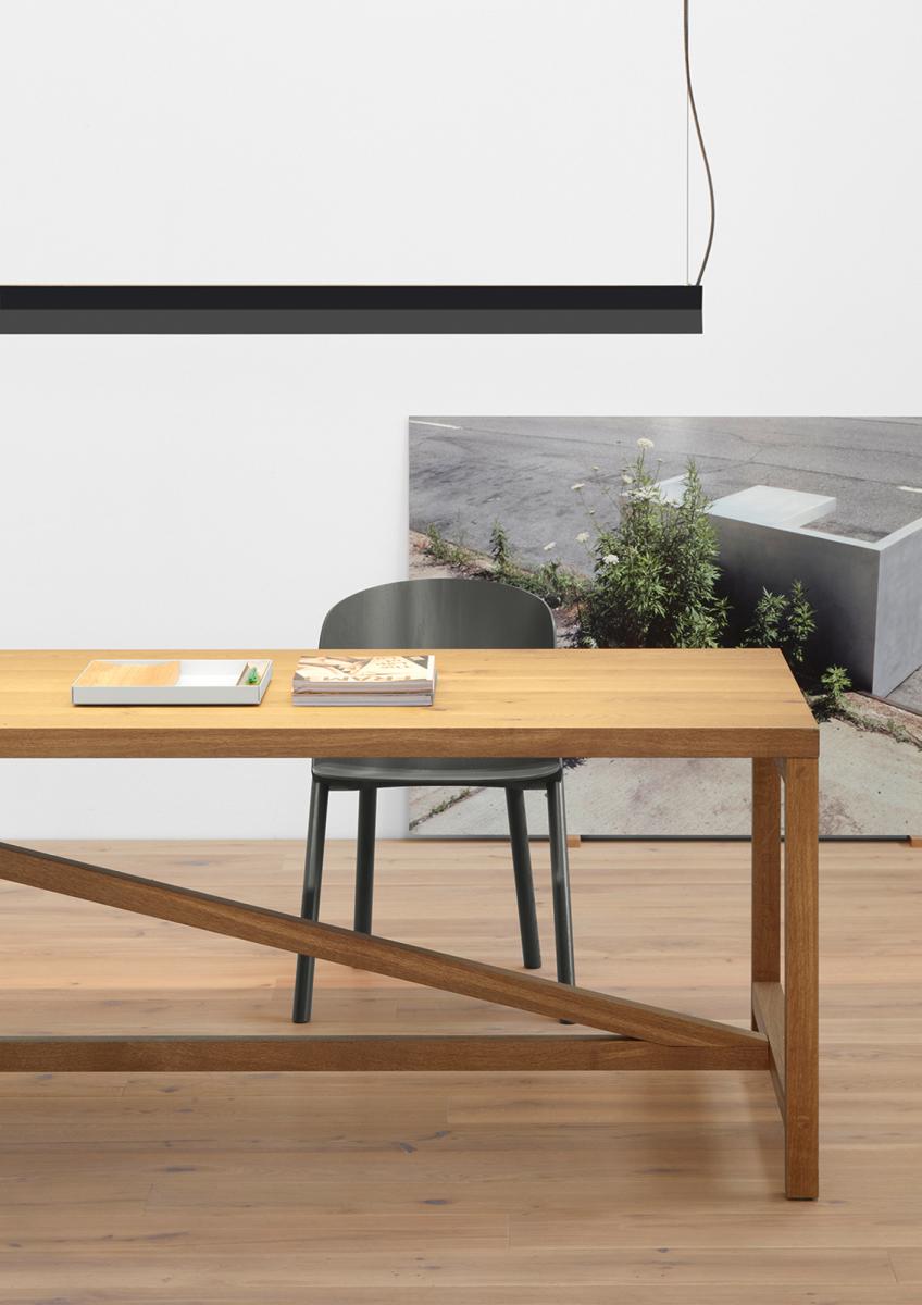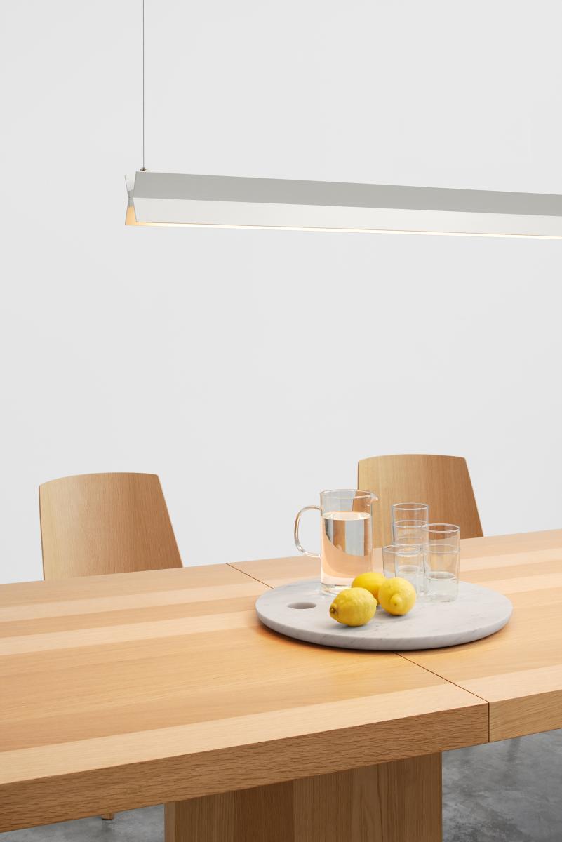 Simplicity is the allure and strength of the SPAN pendant light. Balanced from two suspension points, the wings of the X-shaped light efficiently direct light to the table top as well as producing subtle ambient light for the ceiling, avoiding any glare.