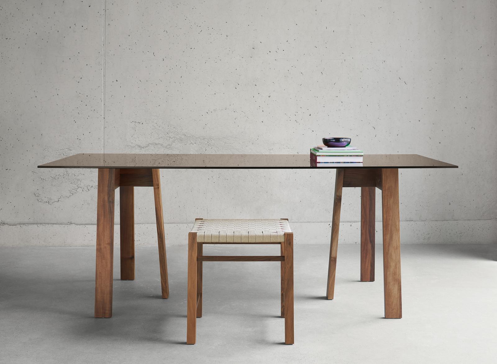 The simple and elegant stool ASWAN features a hand-woven seat surface finished in a textile band or vegetable tanned leather, which is luxuriously soft and will patinate with exposure to direct light. Inspired by Egypt and hence the name, ASWAN is a clear example of Ferdinand Kramer's alluring appeal in his designs of functional and compelling pieces. The stool ASWAN is available in waxed solid European oak or European walnut. The versatile character of the linear stool allows for an application in diverse environments, either as a stand-alone piece or also in combination with other furniture from the e15 collection. For additional stability, the stool's frame is fitted with a steel profile. ASWAN is delivered as one piece.
