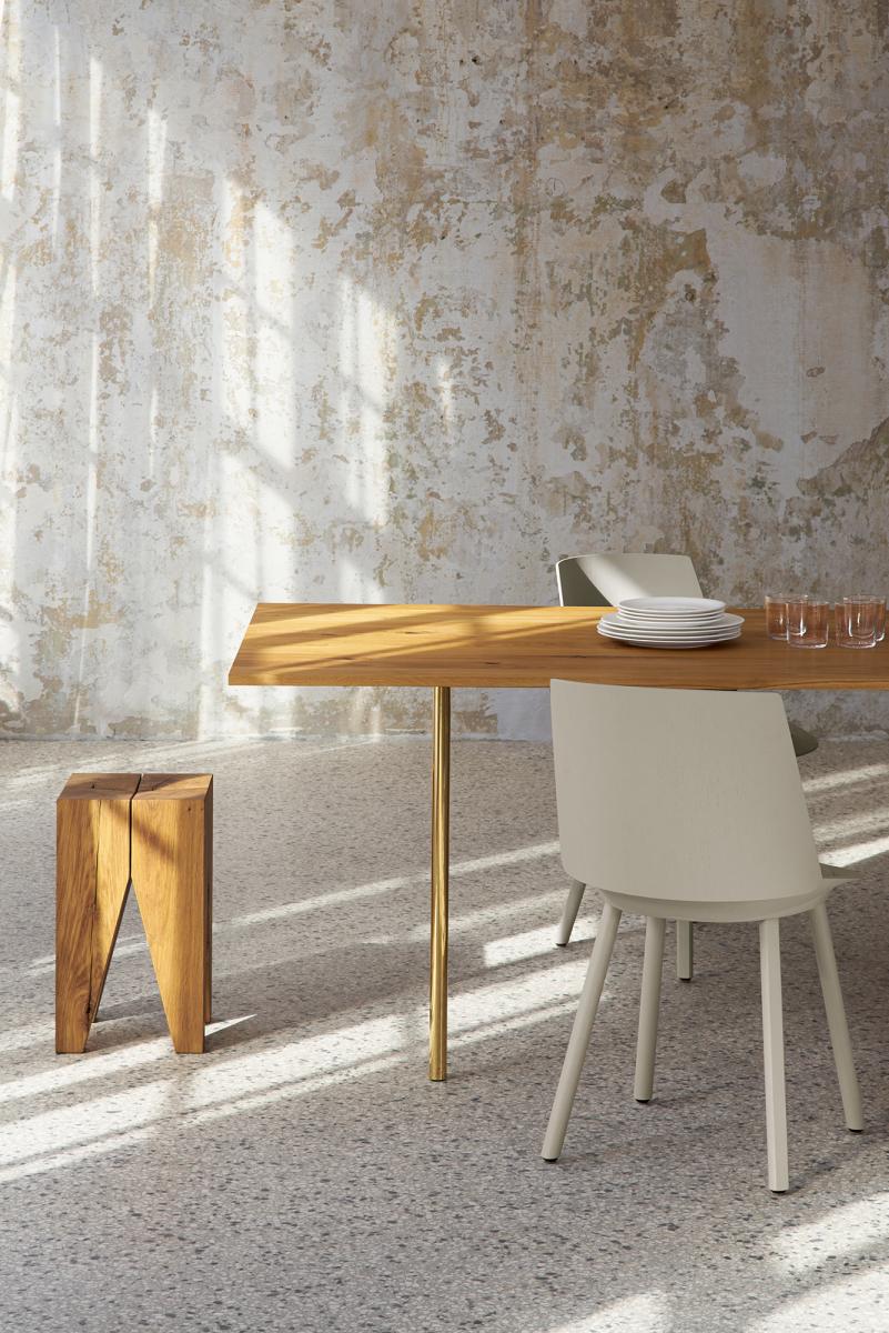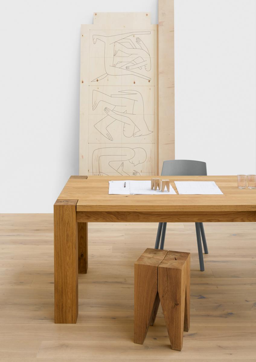 The original BACKENZAHN? designed in 1996 by e15 founder and architect Philipp Mainzer is a modern design classic as well as an identifiable icon for e15. Crafted in Germany, the stool (with shaped seat) or the side table (with flat top) is offered in oiled European oak or walnut. For its signature form and detail the centre of the tree is used. During the seasoning of the solid wood, the legs form their characteristic cracks, which make every stool unique.