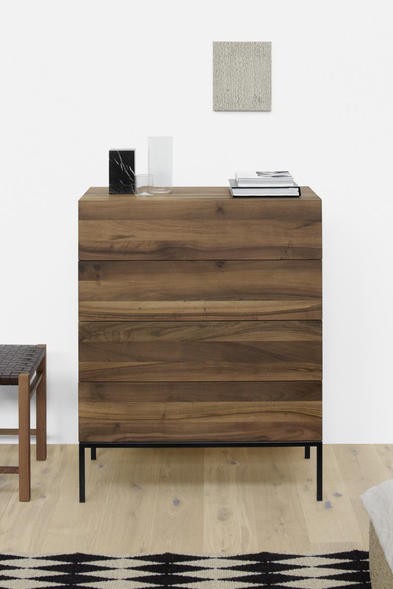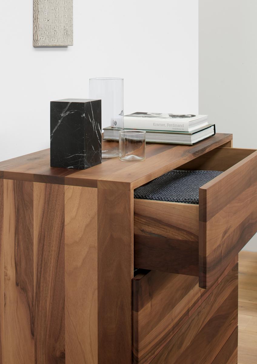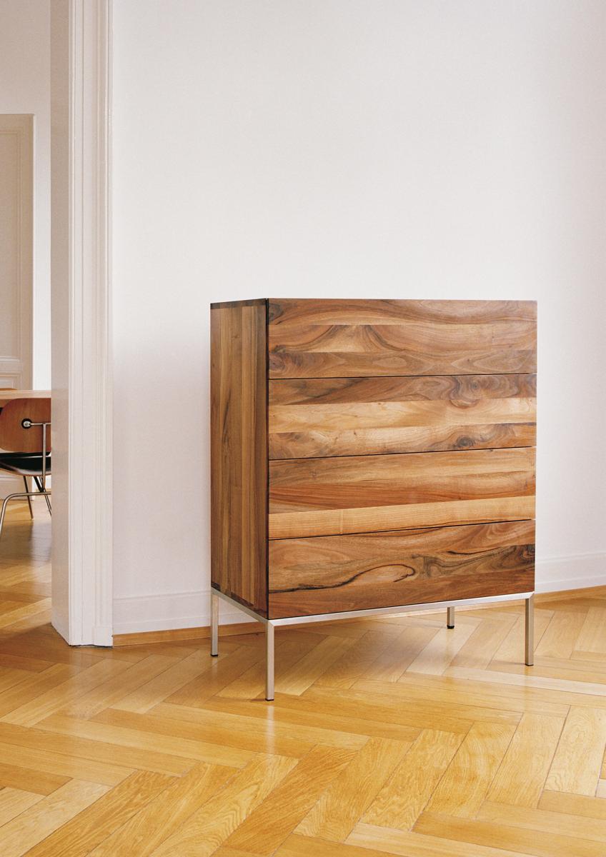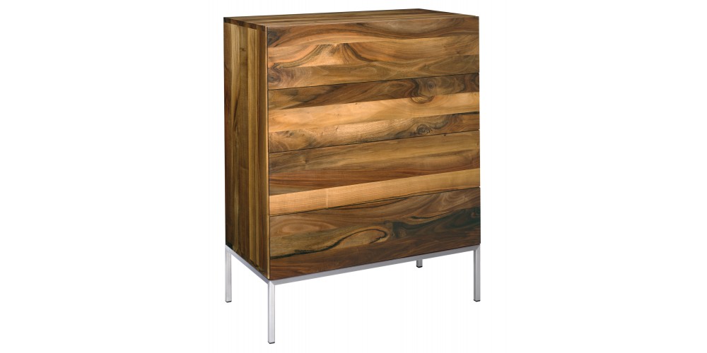 The elegant solid wood chest of drawers FATIMA is a refined piece displaying unique patterns of solid wood grain. The sides of the drawers have an end-to-end bevel functioning as handle.