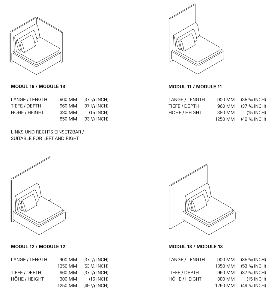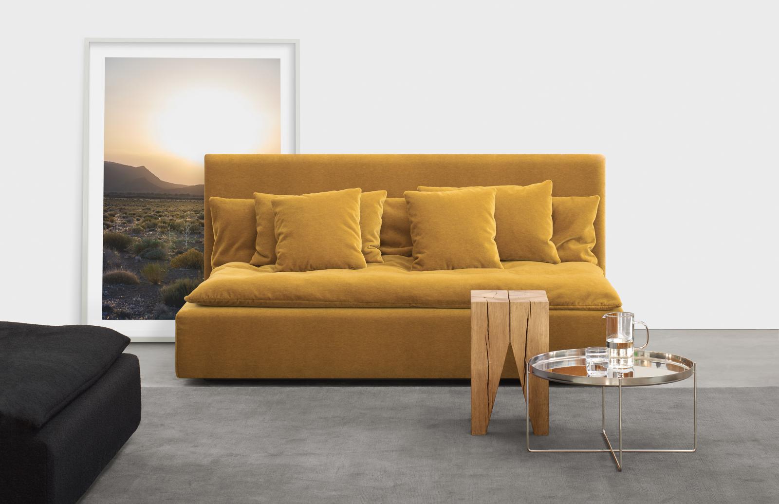The SHIRAZ sofa was inspired by loosely conjoined, communication enhancing traditional Persian seating islands as well as by classical seating furniture found in western salons and hotel lobbies. The SHIRAZ series underlies a flexible system of seating options that impressively harmonises modern and traditional elements. The central element of this design concept is the ability to combine various backrests with different seating elements. Each module of the sofa set contains two elements the base SHIRAZ (with or without a backrest, as desired) and the ELAM seat – an oversized down cushion that completes the sofa component. As resting accessories, we recommend the AMIR armrest and the NIMA cushion, available separately in a variety of sizes.
