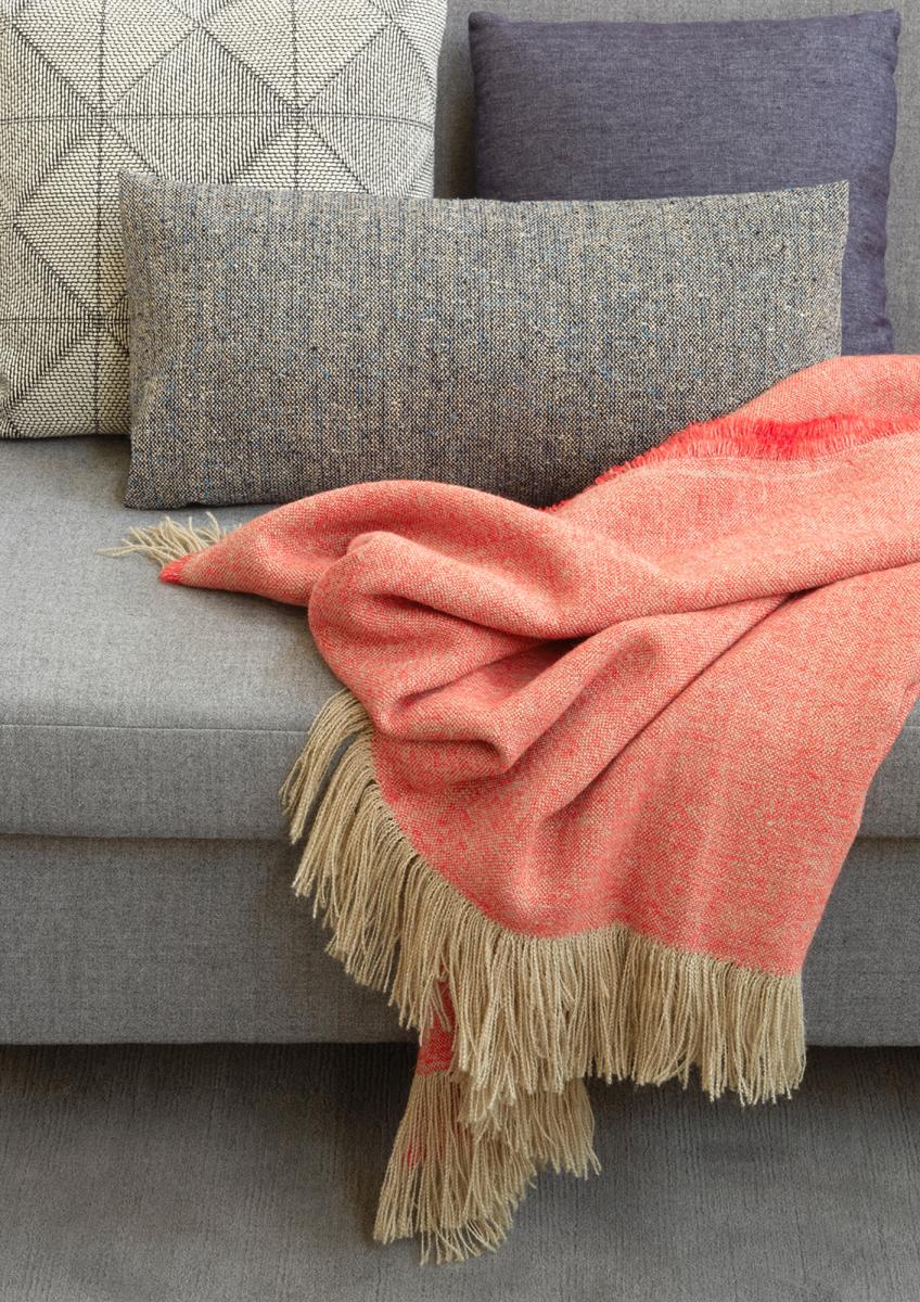 The blanket ESTIVA is woven of finest Belgian linen blend. Its lightness and surface make it ideal for spring and summer time. Available in the colours emerald, coral and sapphire, ESTIVA evokes associations with the gentle, yet colourful and noble landscapes of the Amalfi coast. The blanket’s structure is based on a simple basket weave while its lush fringes draw special attention.