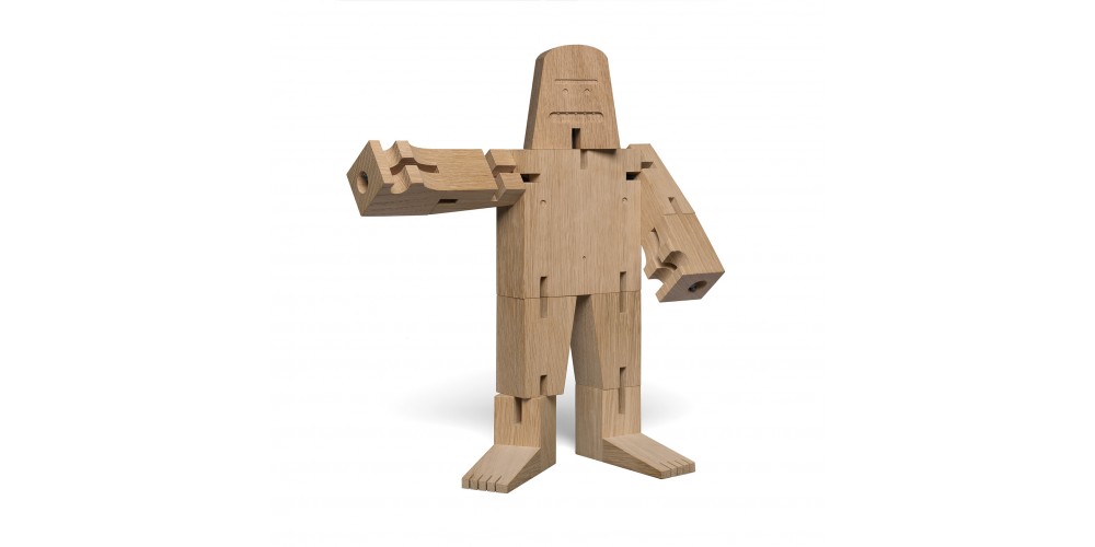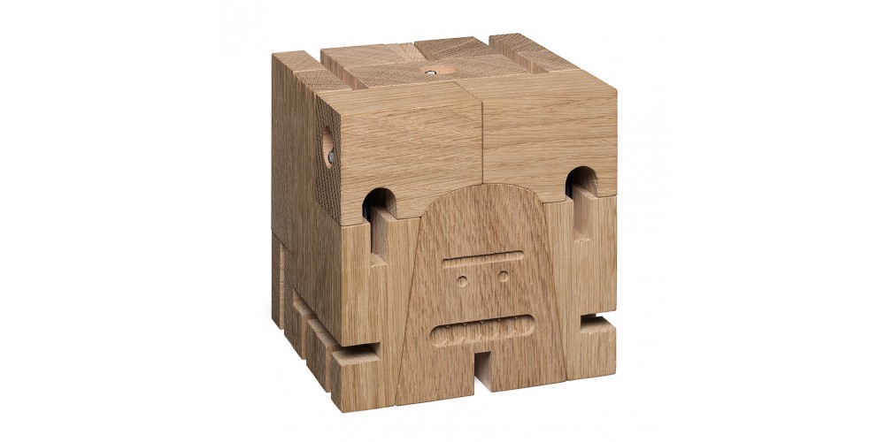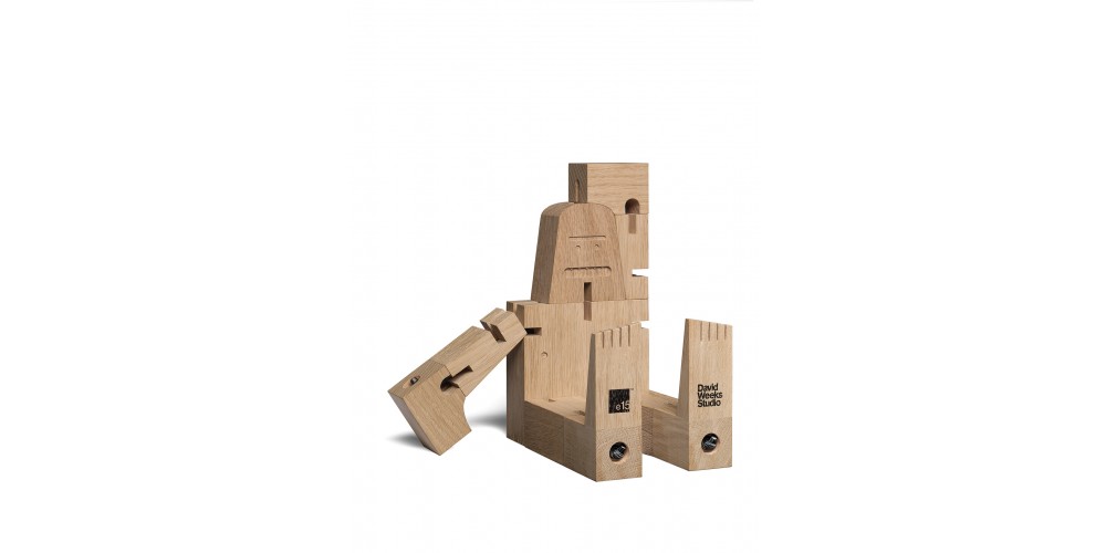Crafted with playful features and foldable limbs, MR B is inspired by e15's modern design classic, the solid wood table BIGFOOT? and its patron, Bigfoot, believed to roam the forests of North America. Made from untreated solid oak and held together with elastic textile band, MR B is a legend in a box!