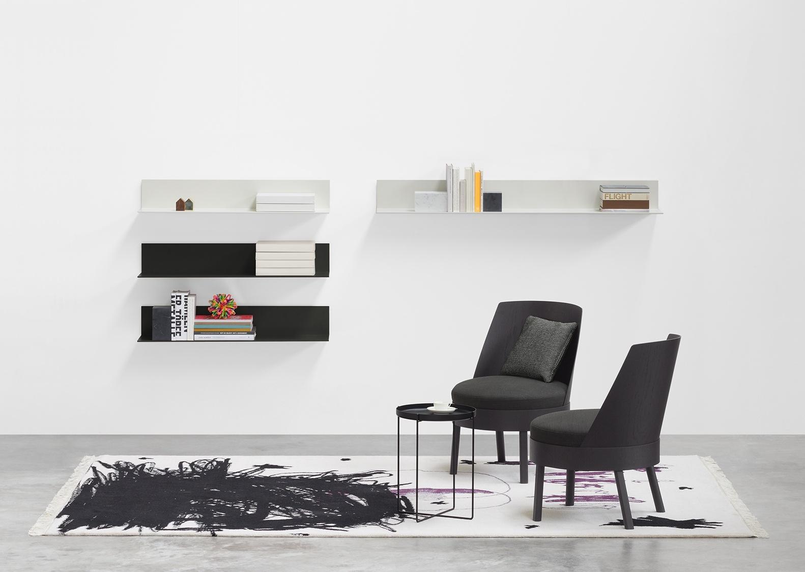 Evoking associations with minimal art, the wall-mounted shelf PROFIL by J?rg Schellmann bears a distinct sculptural appeal. The aluminium shelf is produced in one piece by way of extrusion; a process used to create objects of a continuous cross-sectional profile, forming finished parts with excellent surface quality. Available in powder-coated aluminium in signal white, silk grey or jet black and optionally available with or without side panels, PROFIL offers multiple colour and composition solutions and is available in three lengths.