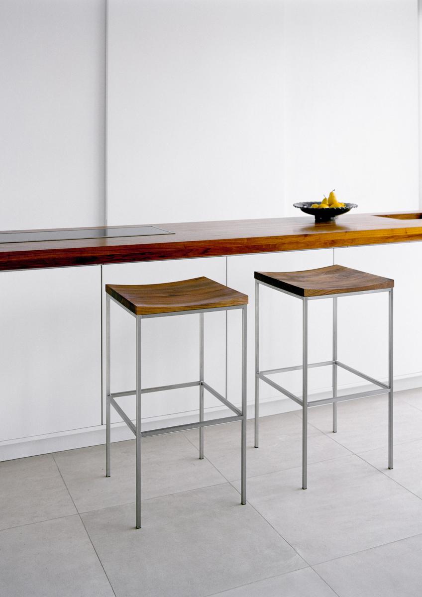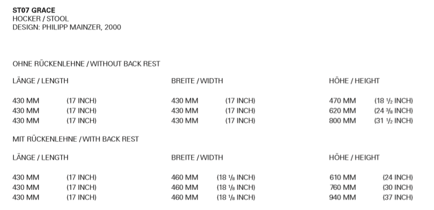 The base of GRACE is constructed of 15 x 15 mm (5/8 x 5/8 inch) brushed stainless steel legs with four cross beams. The seat is shaped with a radius to provide comfort. The clear lines and the large seat of this stool offer an elegant appearance while GRACE can be used from two sides. GRACE is available in three different heights and is delivered as one piece.
